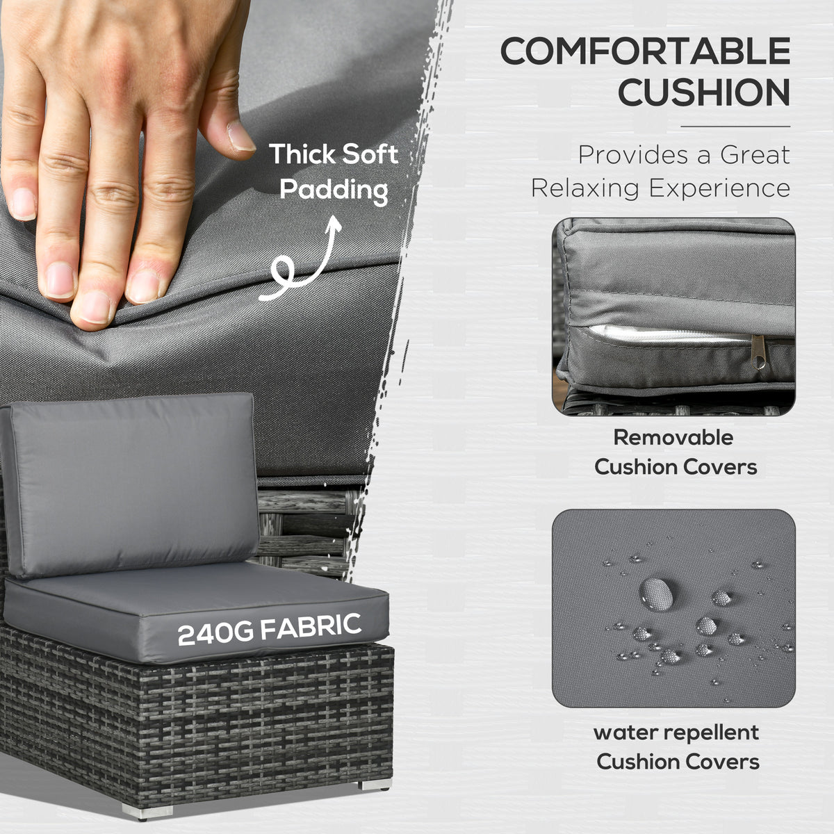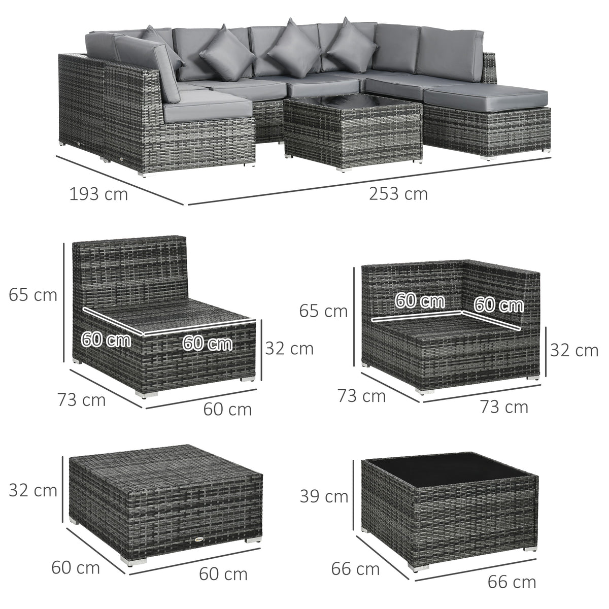 Outsunny 8 Pieces PE Rattan Corner Sofa Set, Outdoor Garden Furniture Set, Patio Wicker Sofa Seater w/ Cushion, Washable Cushion Cover & Tempered Glass Table, Grey - Grey