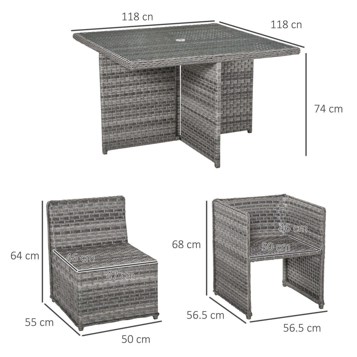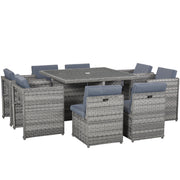 Outsunny 8 Seater Rattan Cube Garden Furniture Set with Parasol Hole, Rattan Dining Set with Cushions, Outdoor Dining Table and Chairs with Square Glass Top Table for Patio, Balcony, Mixed Grey - Mixed Grey