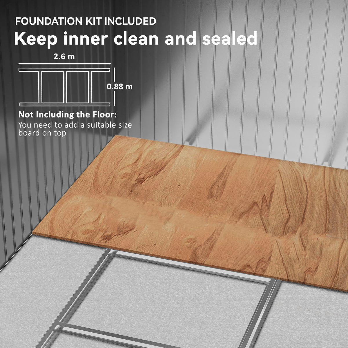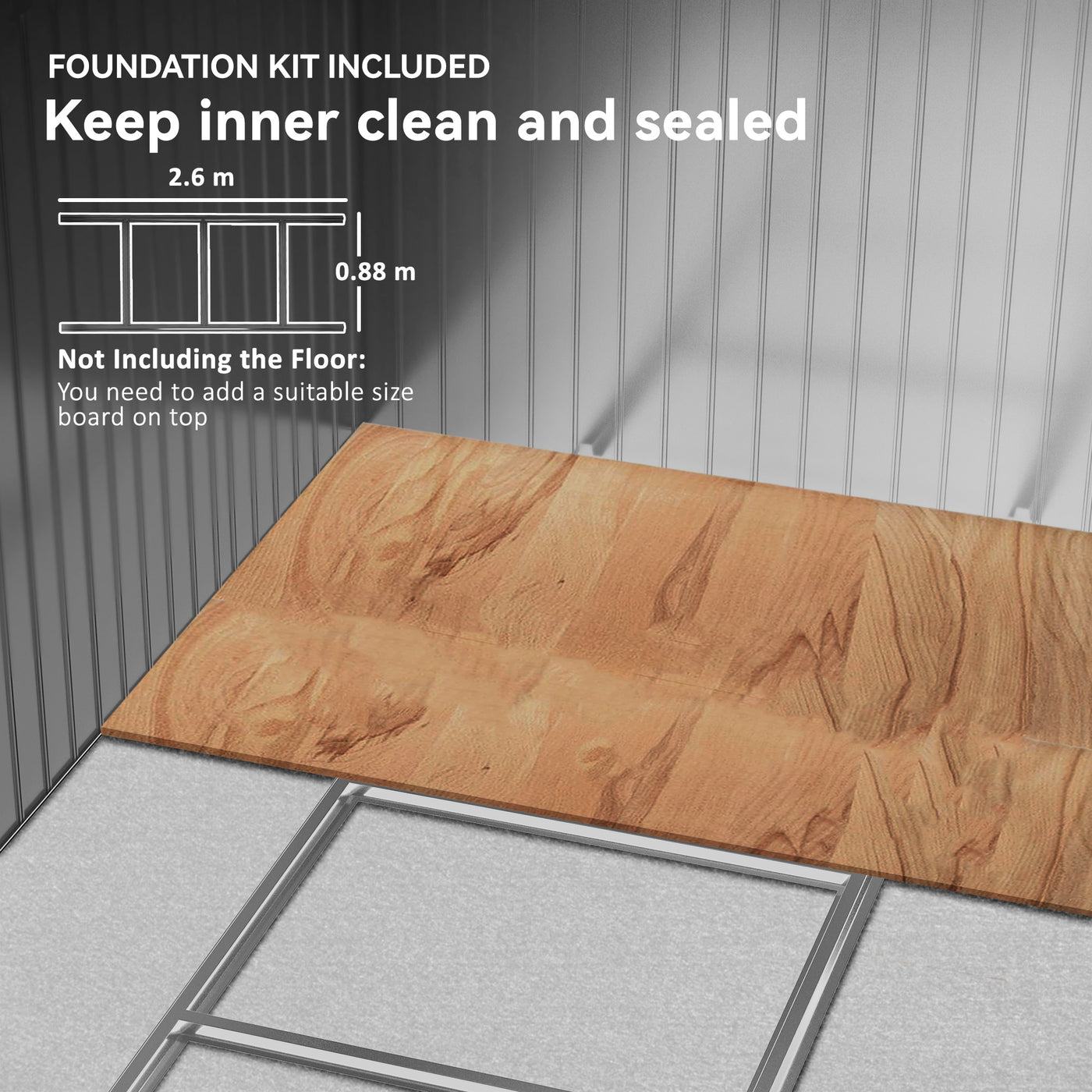 Outsunny 9 x 6ft Metal Garden Shed, Outdoor Storage Tool House with Ventilation Slots, Foundation Kit and Lockable Double Doors, Brown - Brown