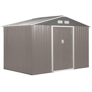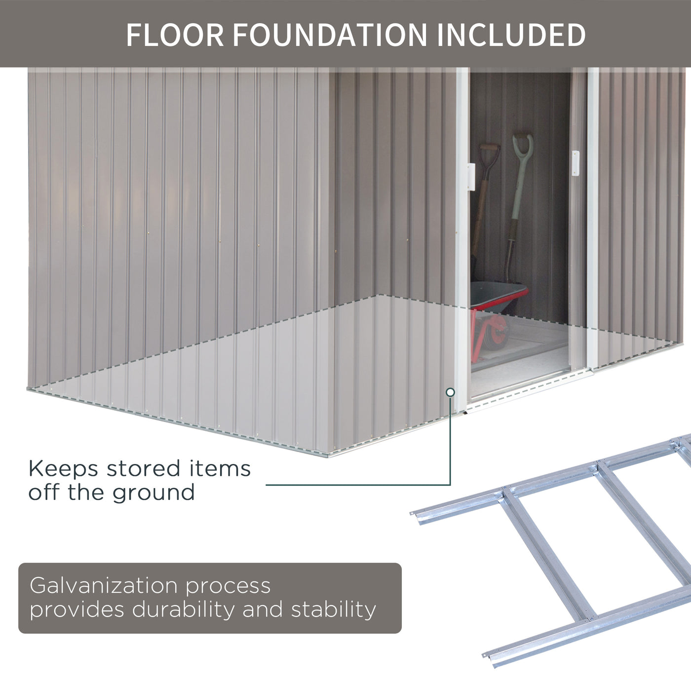 Outsunny 9 x 6FT Outdoor Garden Roofed Metal Storage Shed Tool Box with Foundation Ventilation & Doors Light, Grey - Grey