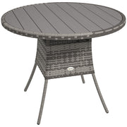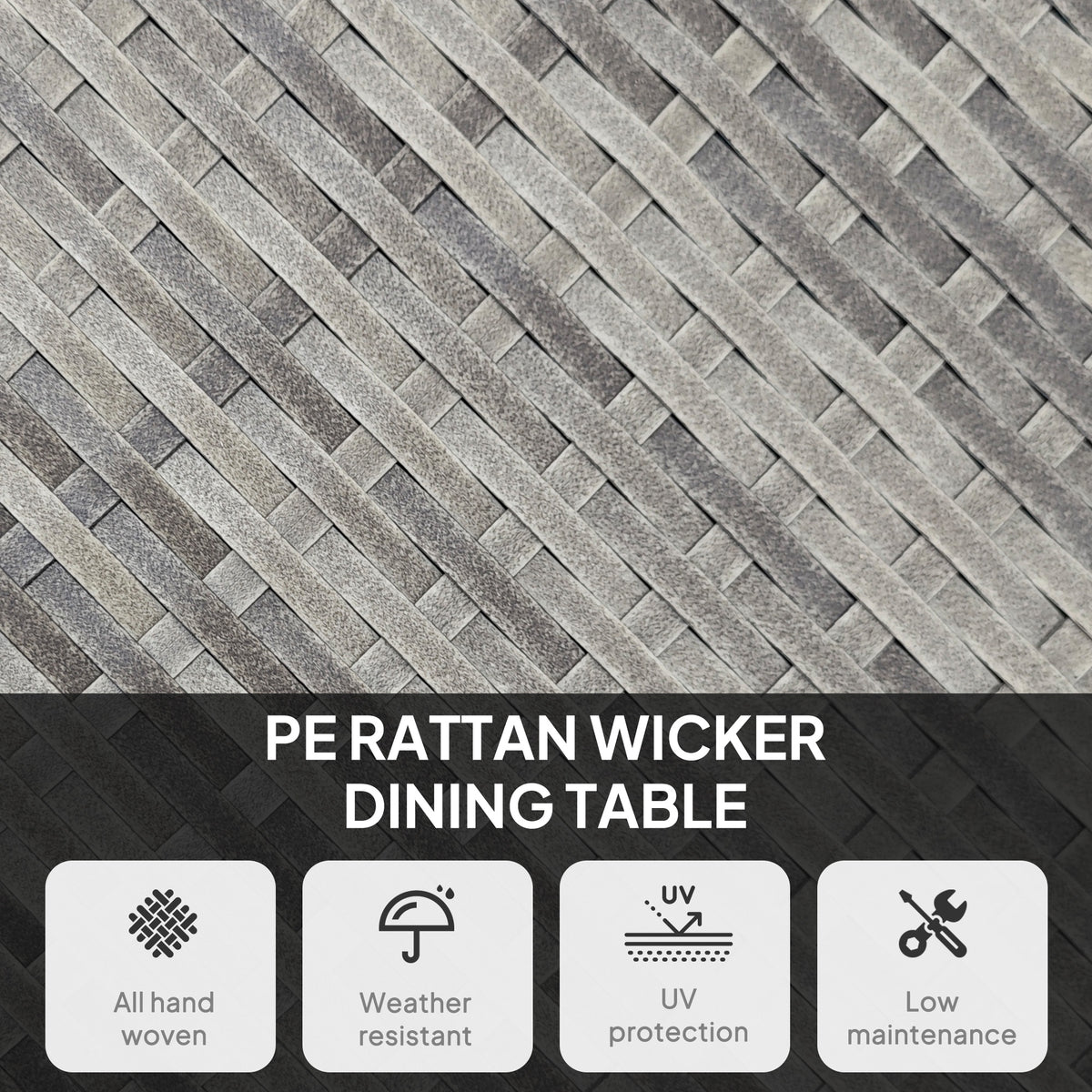 Outsunny 90cm Four-Person Wood-Effect Rattan Table - Grey - Grey