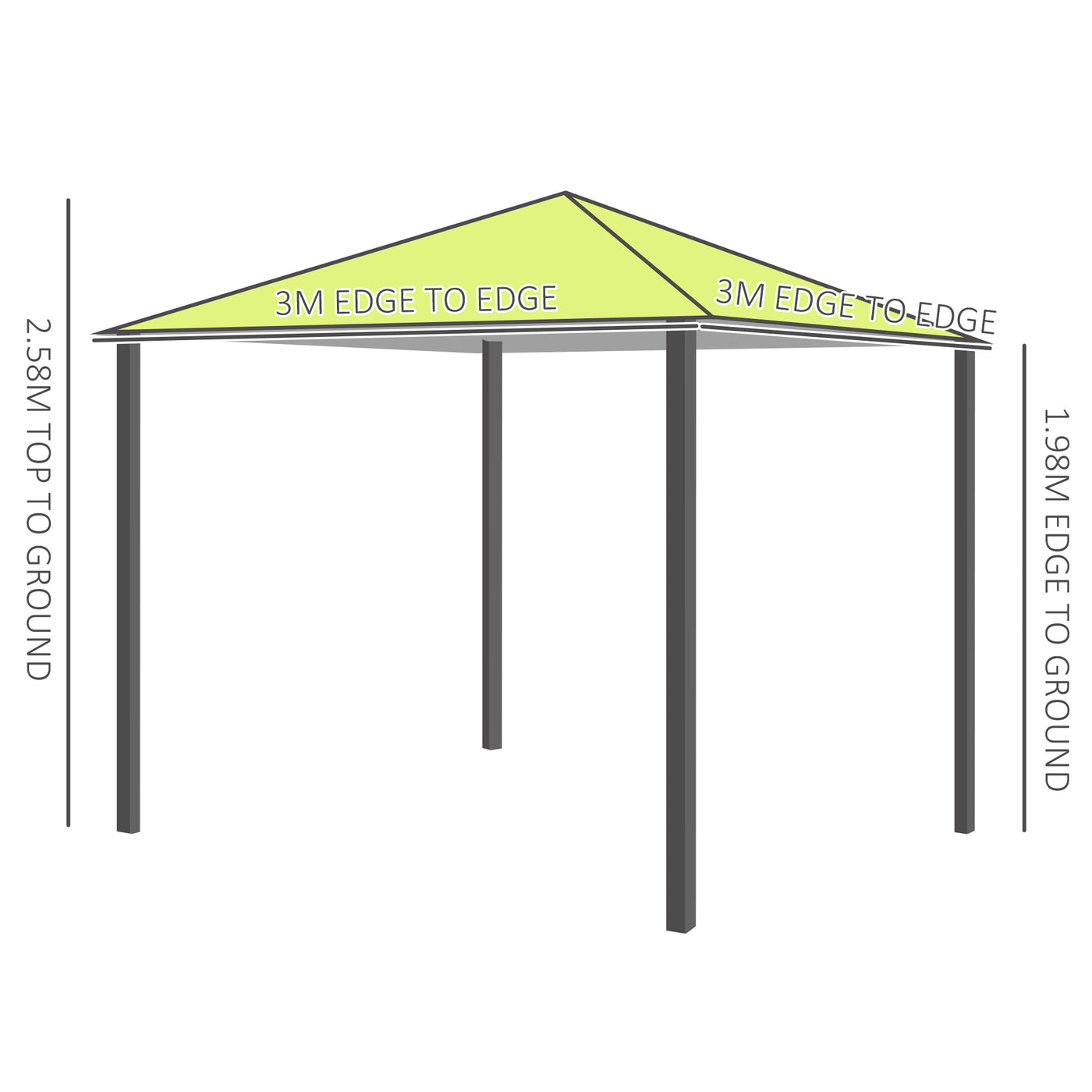 Outsunny 3 x 3(m) Garden Gazebo, Outdoor Gazebo Canopy Shelter with Curtains and Steel Frame for Lawn, Yard and Deck, Green - Green