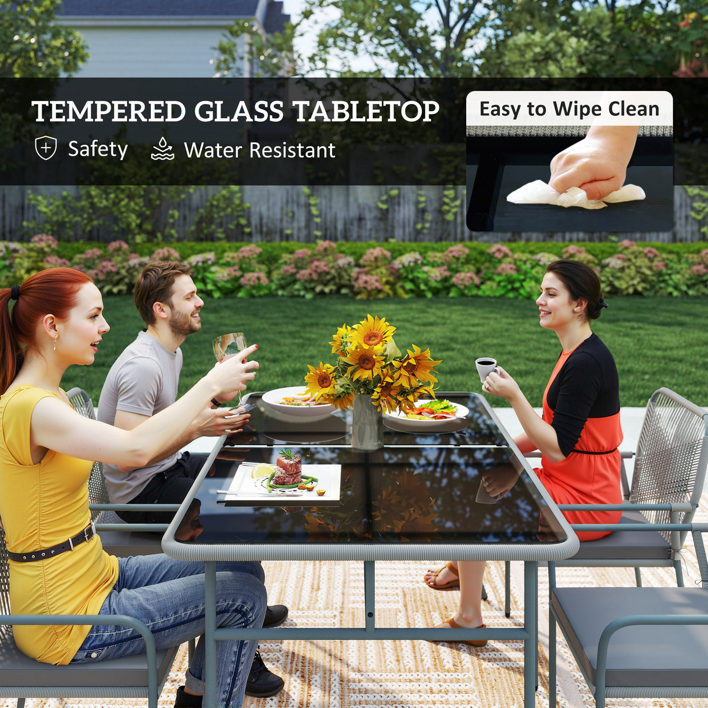 Outsunny Five-Piece PE Rattan Garden Dining Set with Cushions & Stackable Chairs - Light Grey - Light Grey