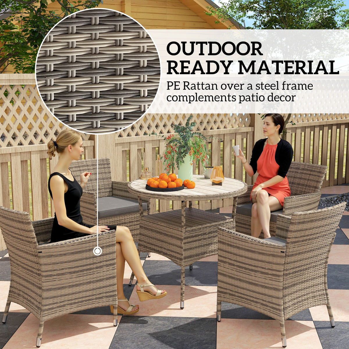 Outsunny Five-Piece Rattan Garden Set, with Two-Tier Table - Grey - Grey