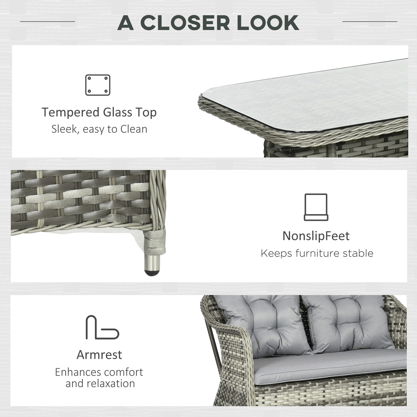 Outsunny Four-Piece Rattan Set, with Glass-Top Table - Grey - Grey