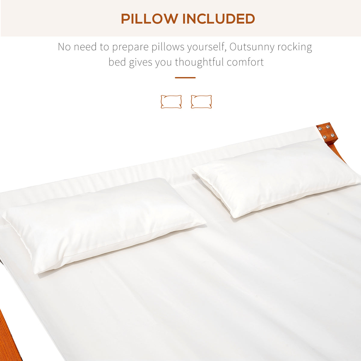 Outsunny Garden Day Rocking Bed Sun Lounger Patio Furniture Hammock With Pillows Wood - White