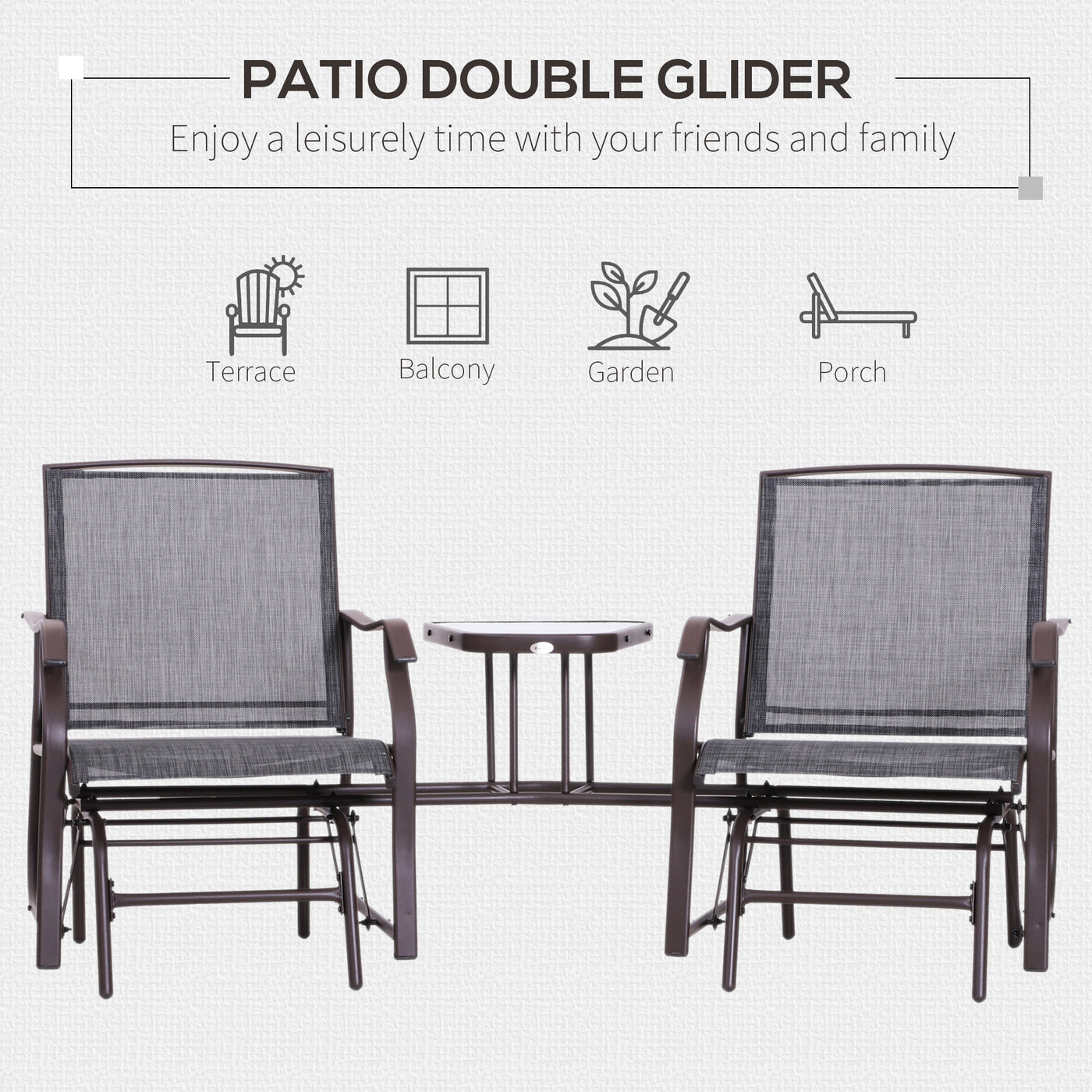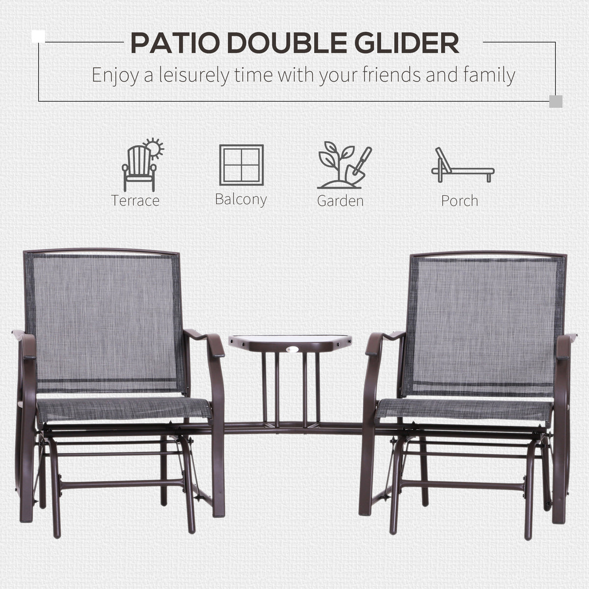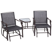 Outsunny Gliding Jack and Jill Seat, with Glass-Top Table - Brown/Grey