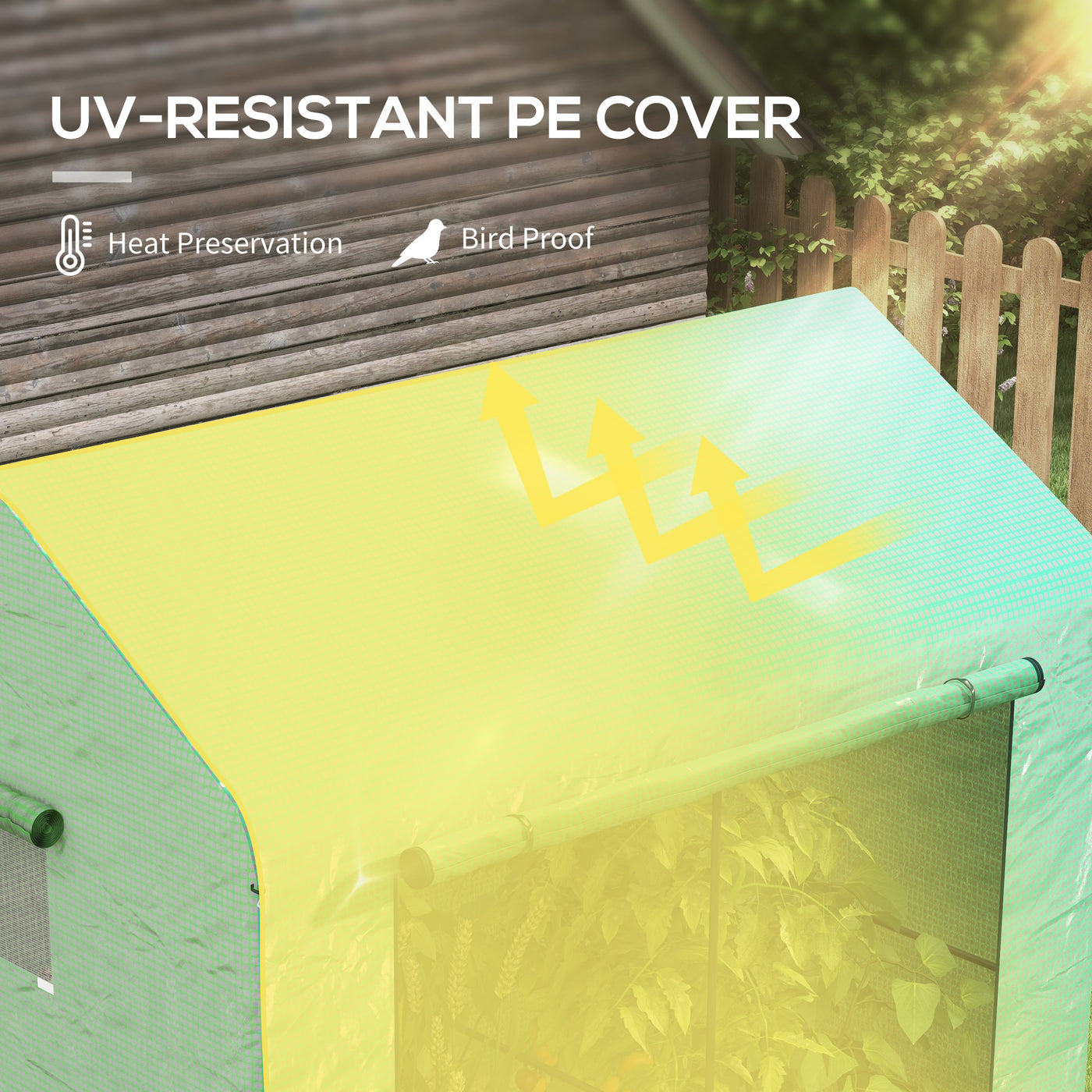Outsunny Greenhouse, Walk-in Garden Grow House with Roll-up Door and Mesh Windows, 200 x 140 x 200cm, Green - Green