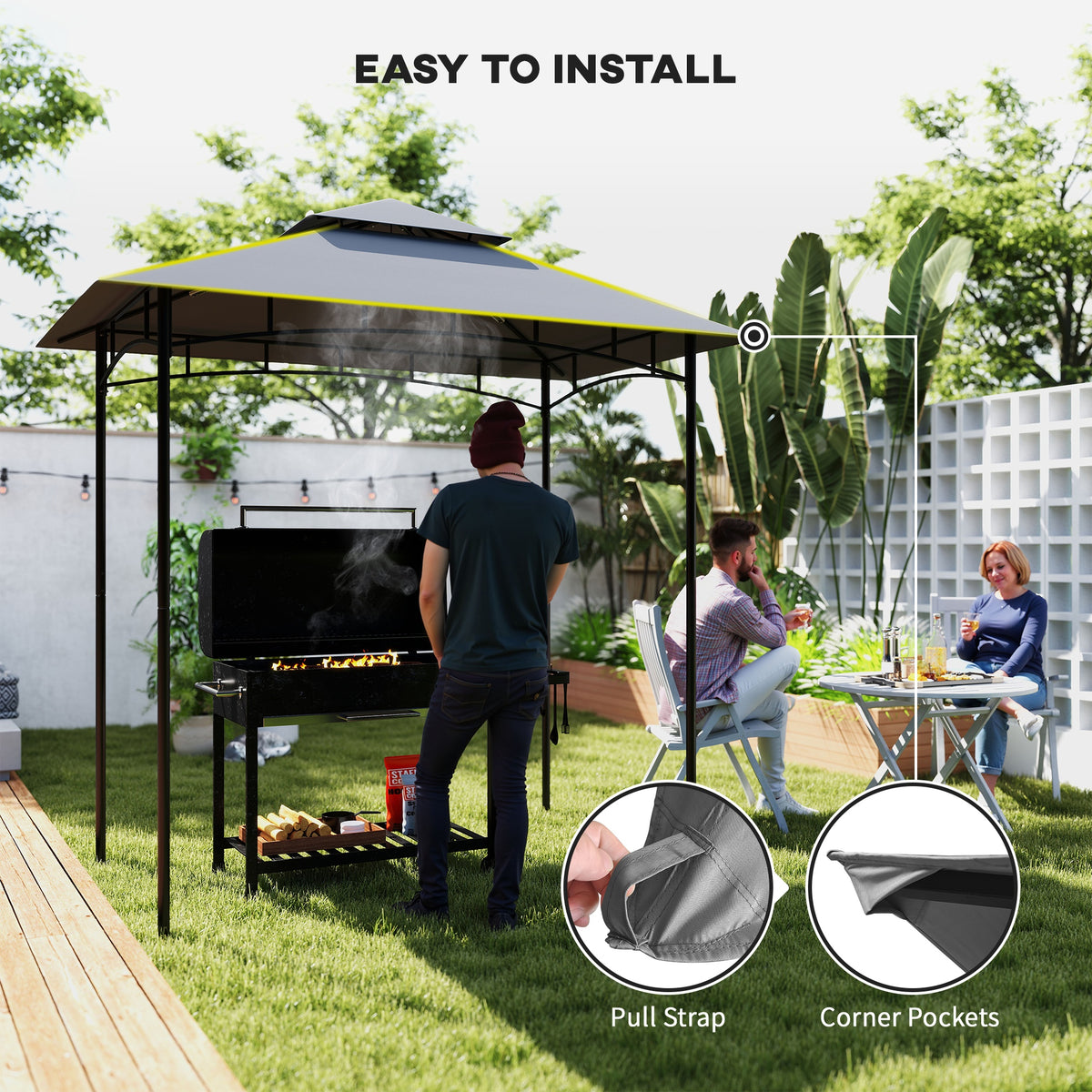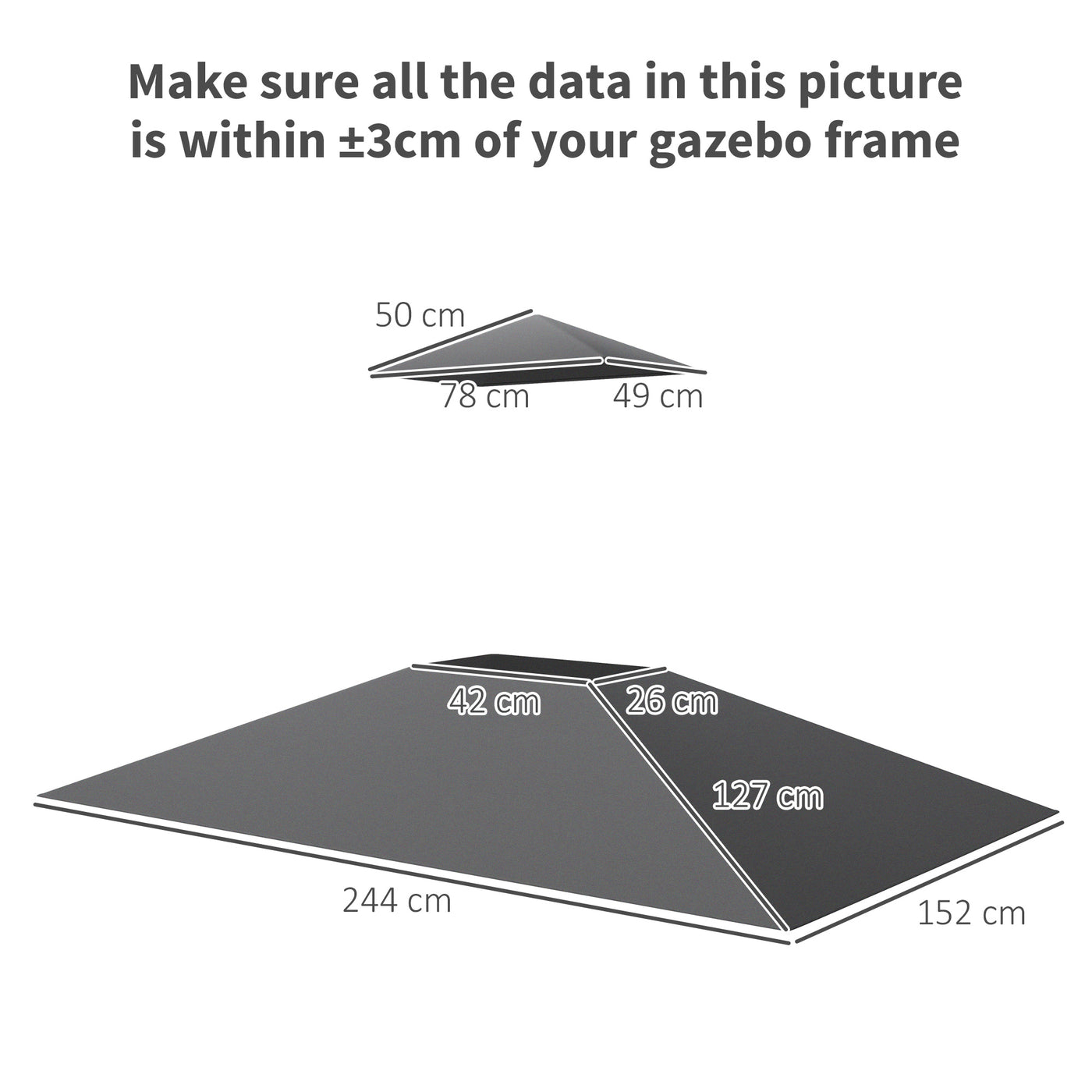 Outsunny Grill Gazebo Replacement Canopy Roof for 1.5 x 2.4m Frame, UPF50+ Protection, Double Tiered 5' x 8' Outdoor BBQ Gazebo Cover Replacement, TOP COVER ONLY, Dark Grey - Dark Grey