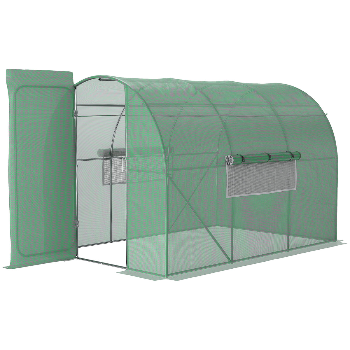Outsunny Large Polytunnel Walk In Greenhouse, Plant Gardening Tunnel Green House with Metal Hinged Door, Galvanised Steel Frame & Mesh Windows, Green (3 x 2 m) - Green