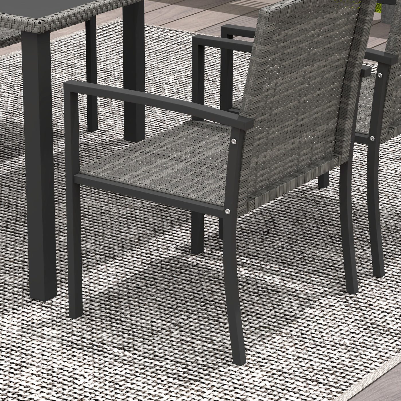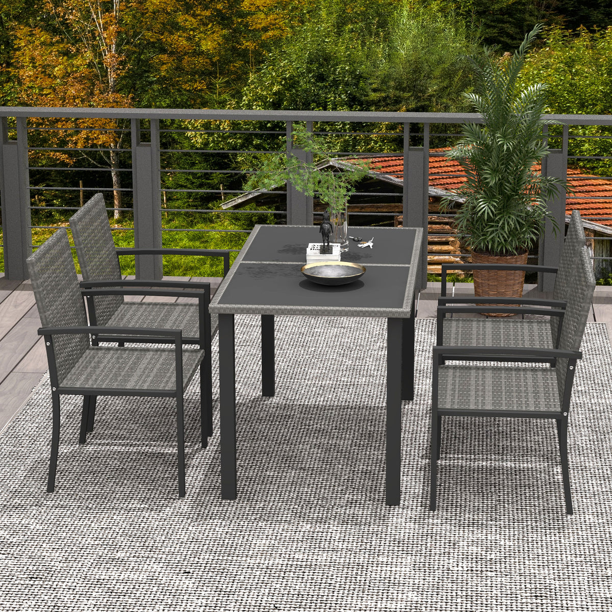 Outsunny Outdoor Dining Set 5 Pieces Patio Conservatory with Tempered Glass Tabletop,4 Dining Chairs - Grey - Grey