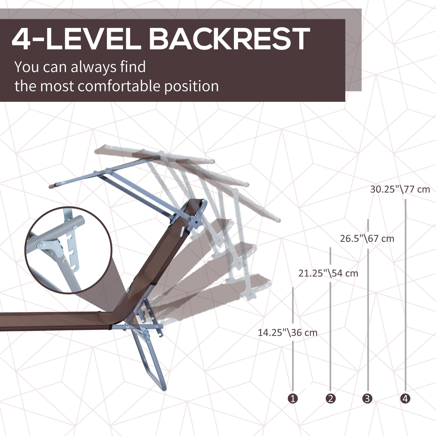 Outsunny Outdoor Foldable Sun Lounger, 4 Level Adjustable Backrest Reclining Sun Lounger Chair with Angle Adjust Sun Shade Awning for Beach, Garden, Patio, Brown - Brown