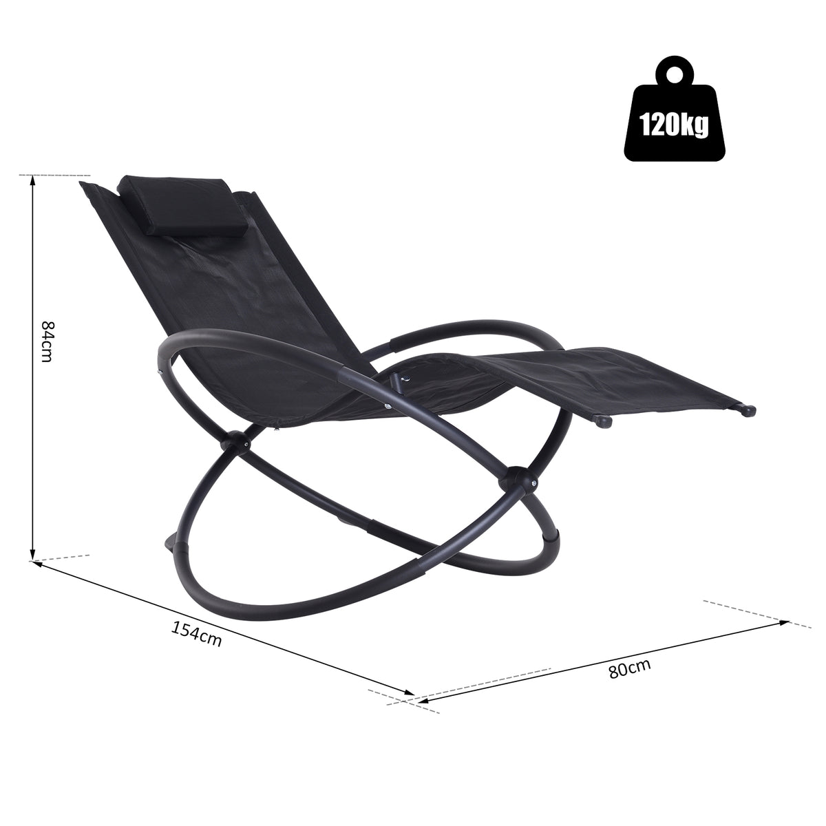 Outsunny Outdoor Orbital Lounger Zero Gravity Patio Chaise Foldable Rocking Chair w/ Pillow Black - Black