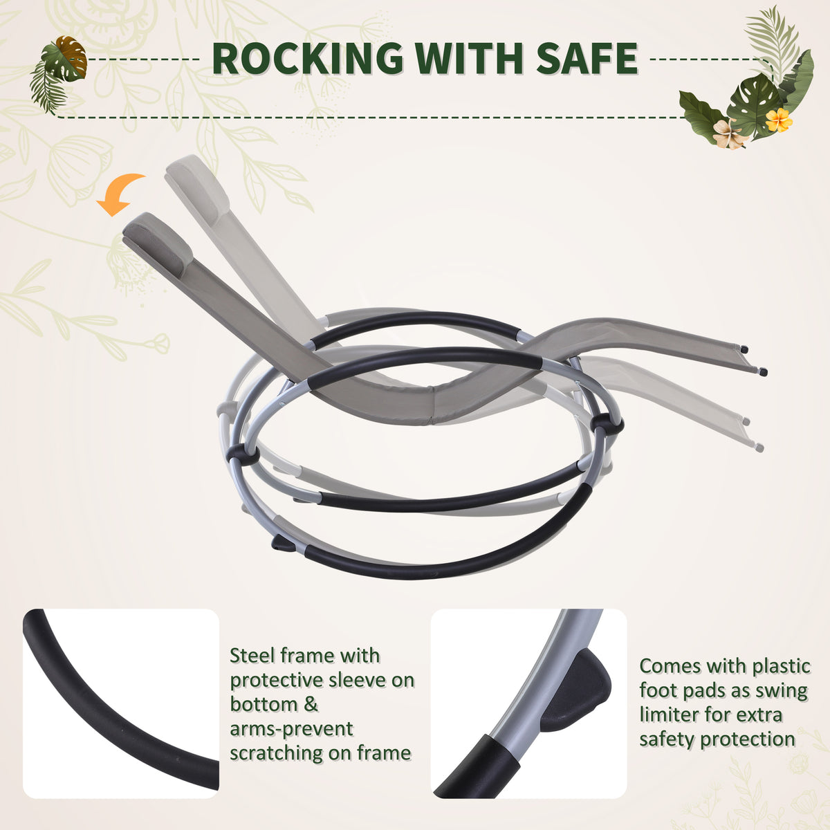Outsunny Outdoor Orbital Lounger Zero Gravity Patio Chaise Sun Lounger Foldable Rocking Chair with Pillow, Grey