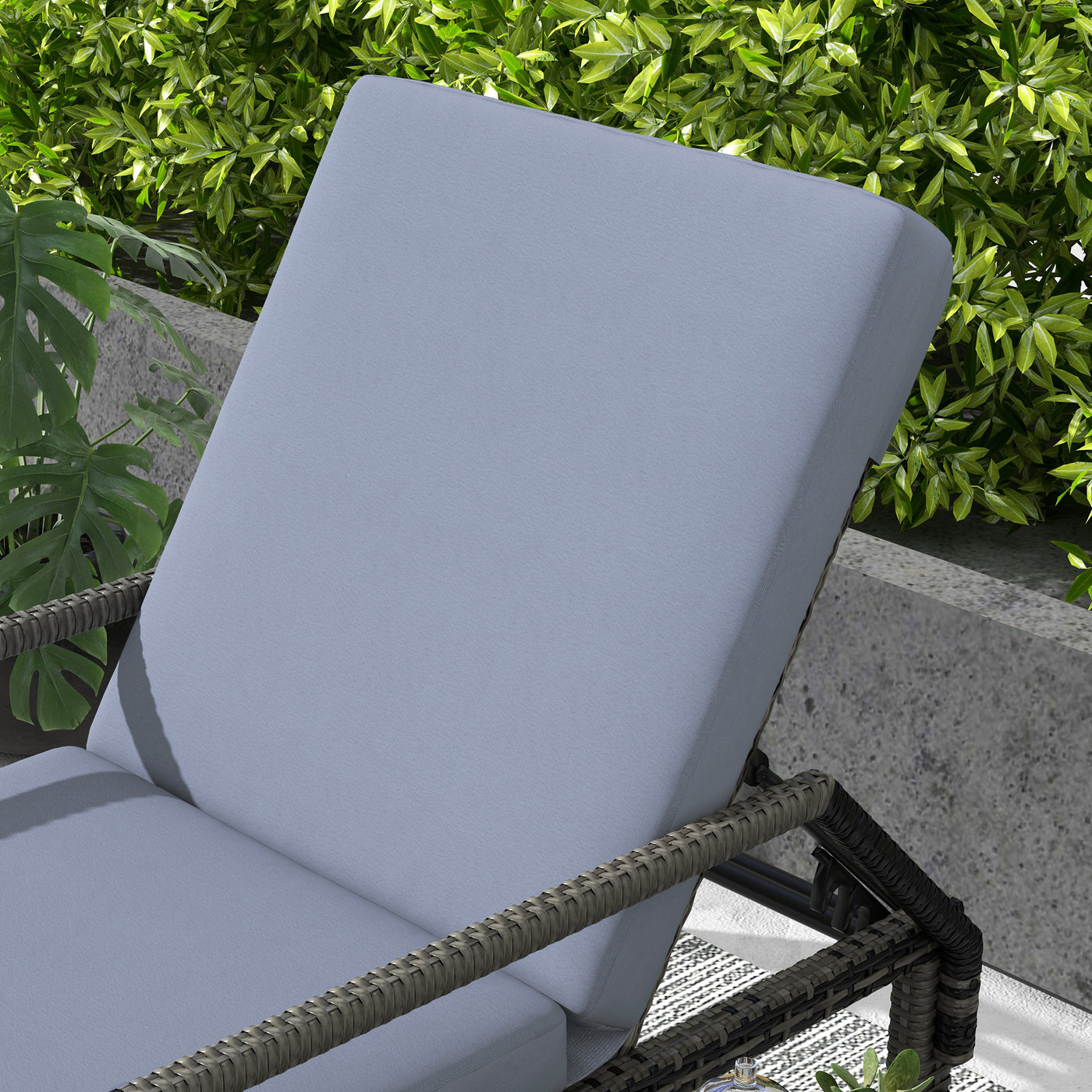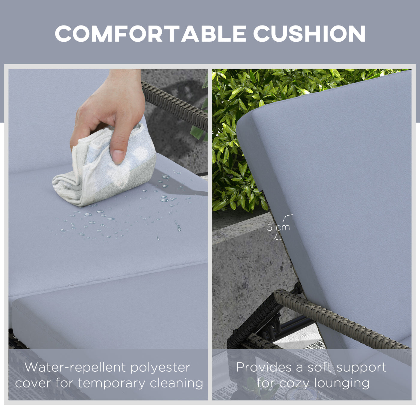 Outsunny Outdoor PE Rattan Sun Lounger, 5-Level Adjustable Backrest Wicker Outdoor Chaise Recliner, Garden Chair with 2 Wheels, Mixed Grey - Dark Grey