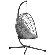 Outsunny Outdoor PE Rattan Swing Chair with Foldable Basket and Cushion, Garden Patio Hanging Egg Chair with Metal Stand, Headrest for Indoor and Outdoor, Light Grey - Light Grey