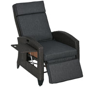Outsunny Outdoor Recliner Chair with Adjustable Backrest and Footrest, Cushion, Side Tray, Dark Grey/Brown - Dark Grey