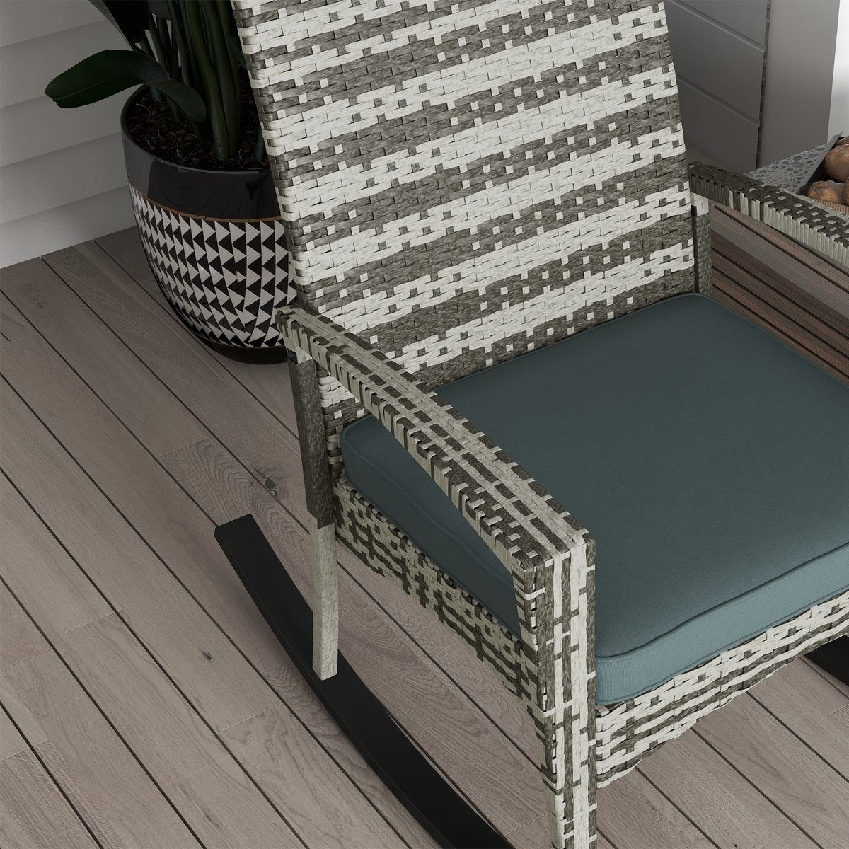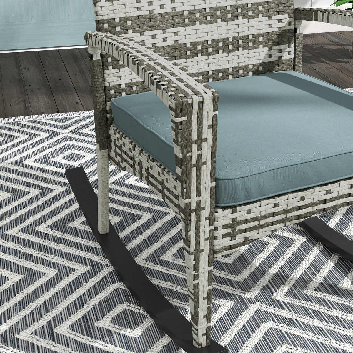 Outsunny PE Rattan Garden Rocking Chair, Outdoor Rocking with Cushion, 160 KG Capacity Wicker Garden Armchair Rocker with Metal Frame for Patio, Porch, Balcony, Light Grey - Light Grey