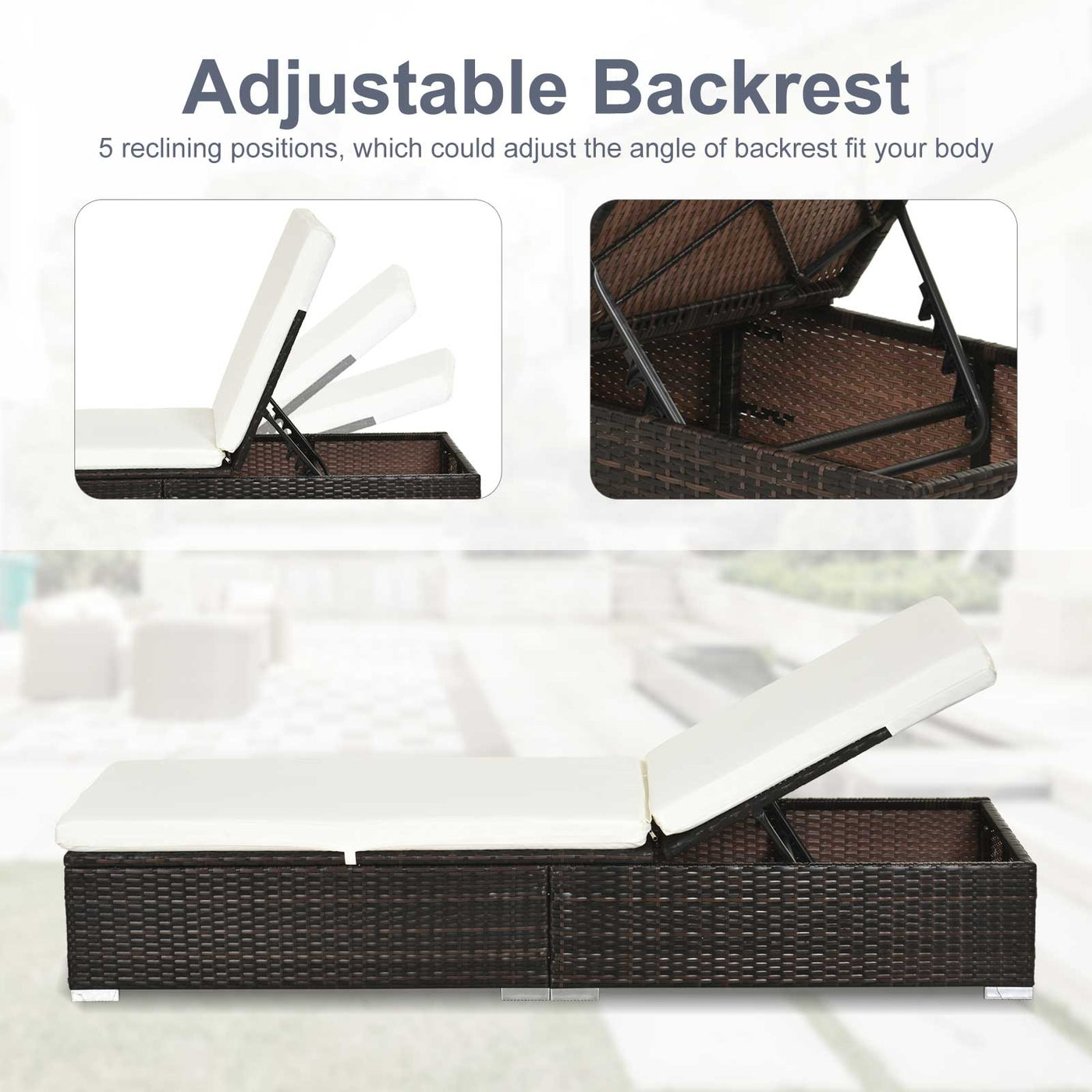Outsunny PE Rattan Sun Lounger, Five-level Adjustable Recliner Bed Chair with Soft Padded Cushion for Patio, Garden, Mixed Brown - Brown