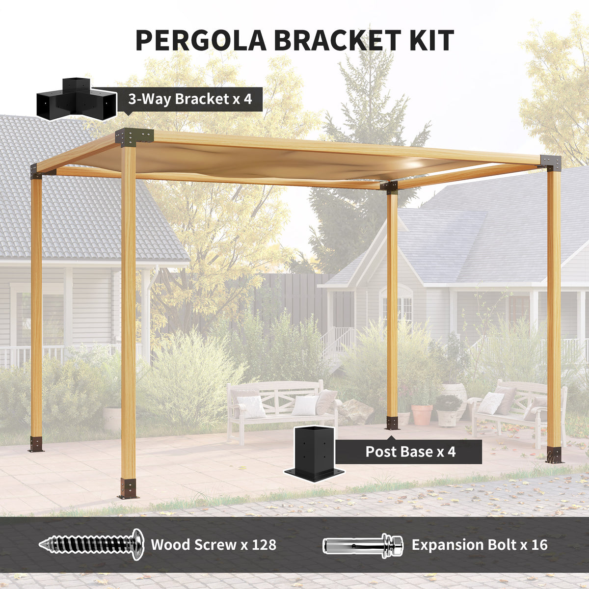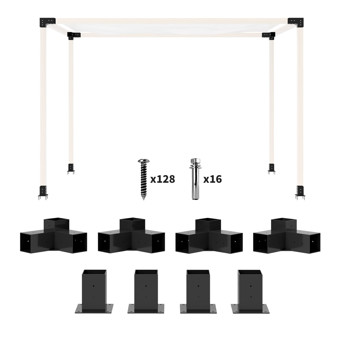 Outsunny Pergola Kit, DIY Pergola Brackets with 3-Way Pergola Corner Brackets and Post Base for 4" x 4" (Actual 3.6" x 3.6") Lumber, 8 PCS Includes Screws - Black