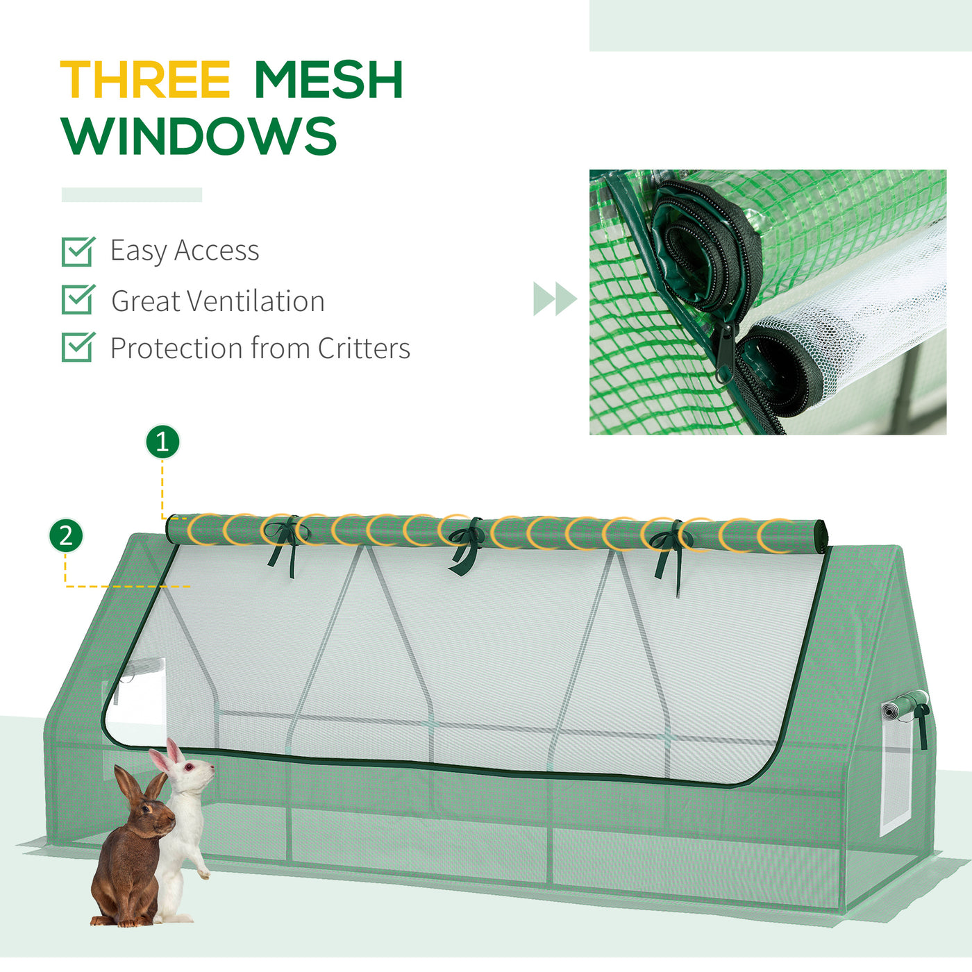 Outsunny Portable Small Polytunnel, Mini Greenhouse with Mesh Windows for Indoor and Outdoor, 240x90x90cm, Green - Green