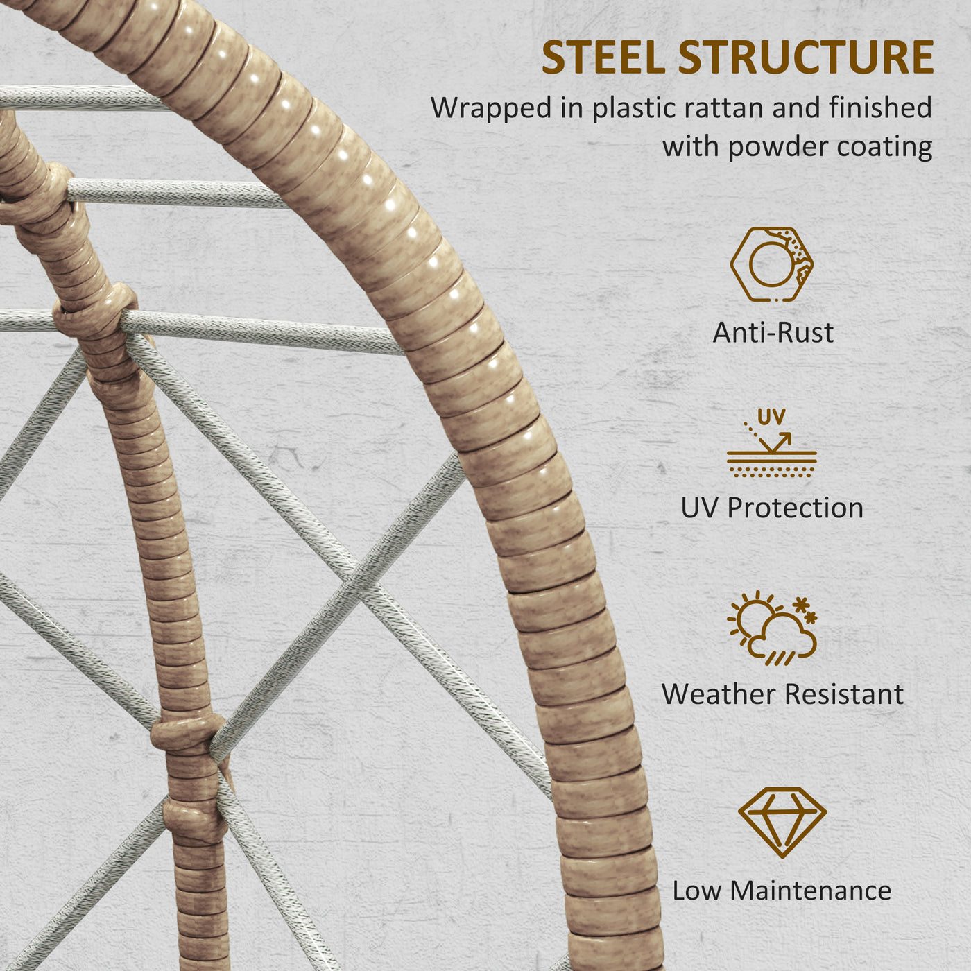 Outsunny Rattan Egg Chair Outdoor Indoor Wicker Chair with Thickened Cushion and Headrest, Standing Garden Egg Chair with Cup Holder, Metal Frame for Patio, Balcony, Brown - Brown