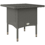 Outsunny Rattan Side Table, Outdoor Coffee Table with Plastic Board Under the Full Woven Table Top for Patio, Garden, Balcony, Grey - Grey