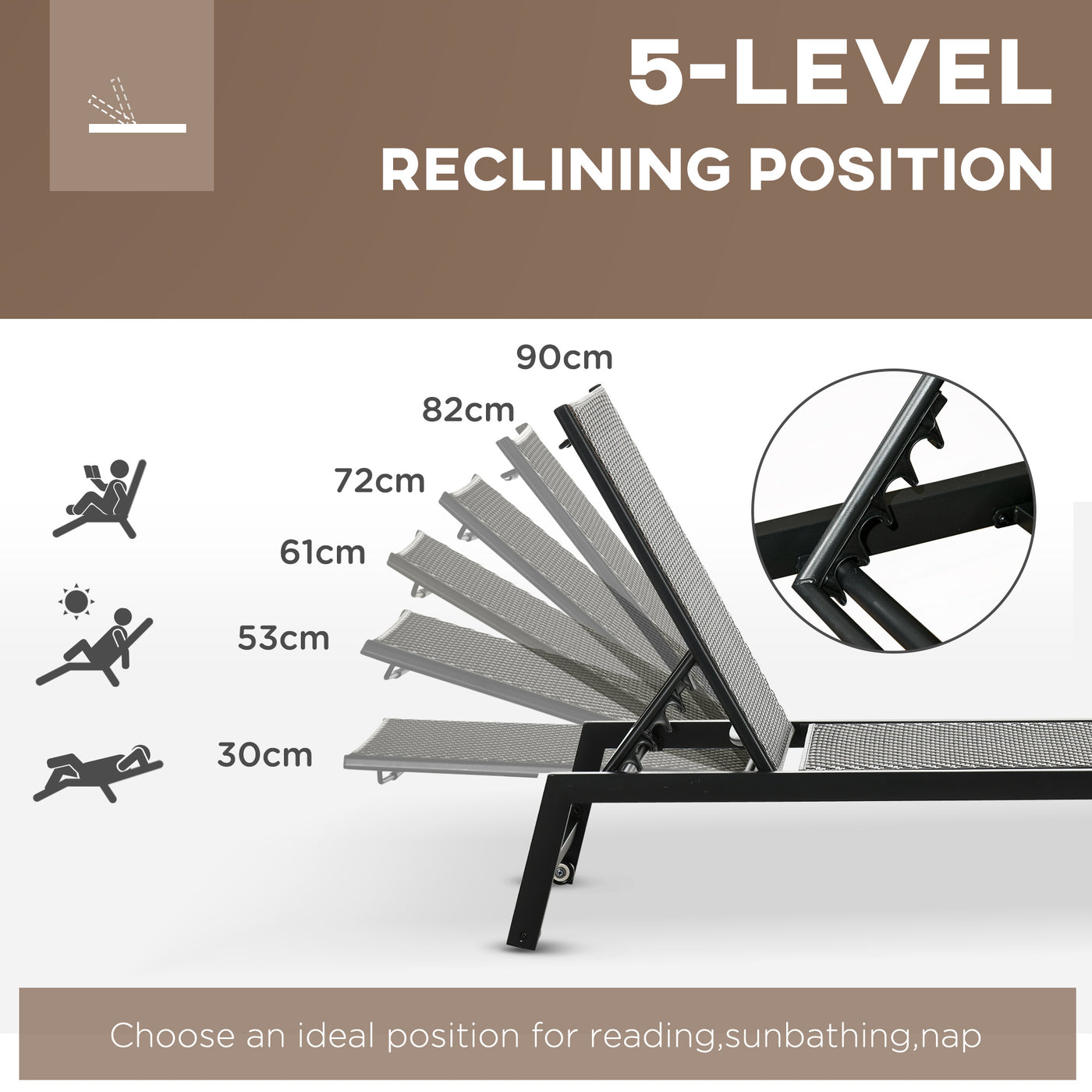 Outsunny Rattan Sun Lounger, with Five-Position Back - Brown/Black - Brown