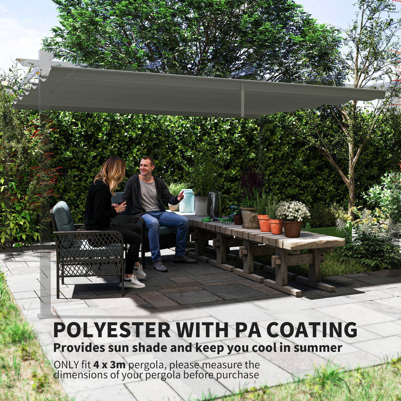 Outsunny Retractable Pergola Shade Cover, Replacement Canopy for 4 x 3 (m) Pergola, Retractable Roof, Light Grey - Light Grey