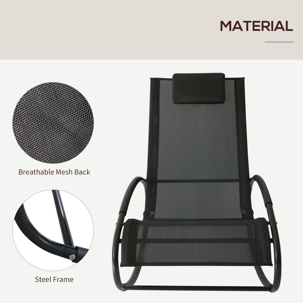Outsunny Rocking Chair Sun Lounger Recliner Rocker Texteline Fabric Patio Garden Relaxer with Pillow, Black - Black