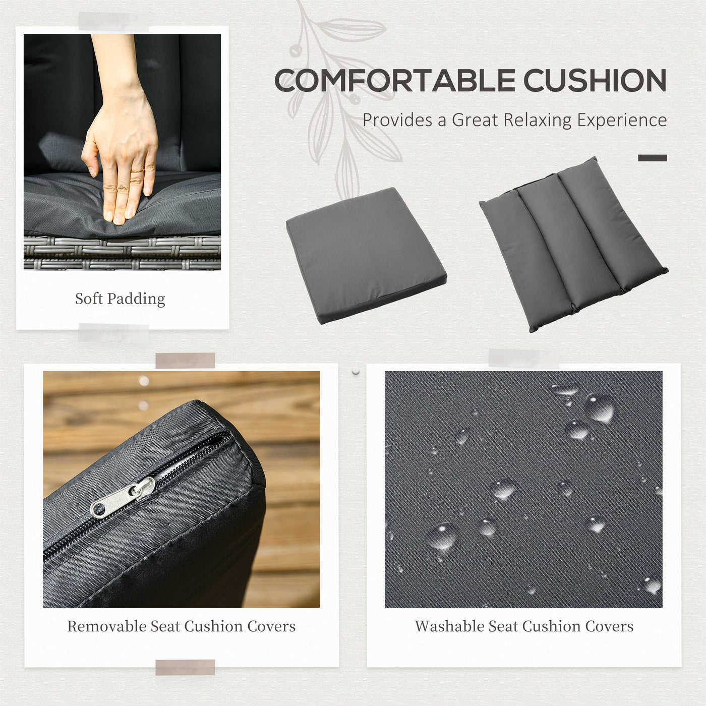 Outsunny Seven-Piece Rattan Dining Table, with Round Glass-Top Table - Mixed Grey - Grey