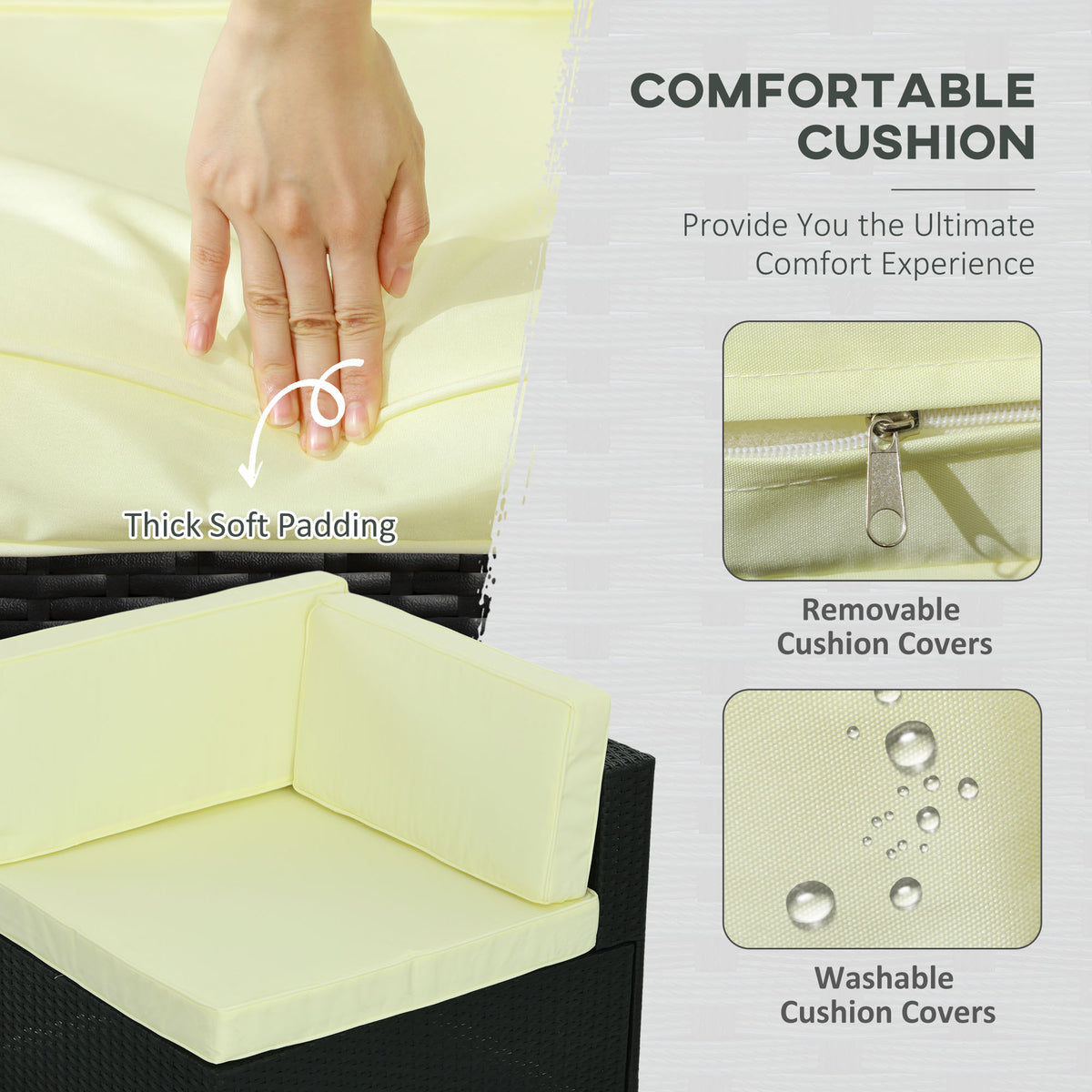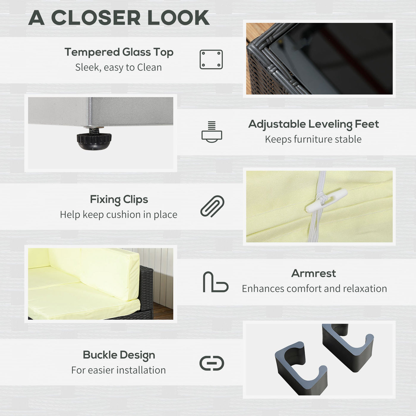 Outsunny Seven-Piece Rattan Garden Set, with Glass-Top Table - Black/Beige - Black