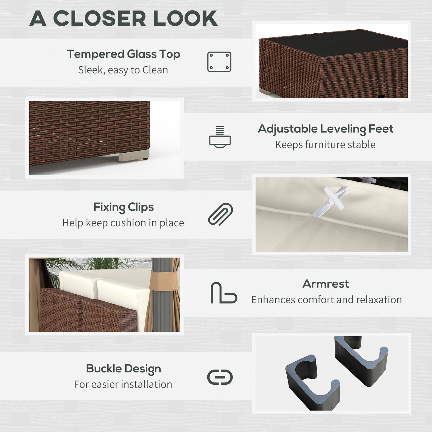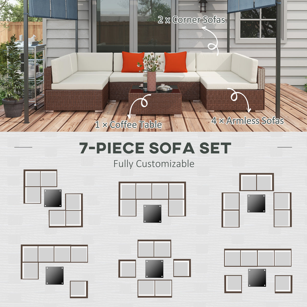 Outsunny Seven-Piece Rattan Garden Set, with Glass-Top Table - Brown/Beige - Brown
