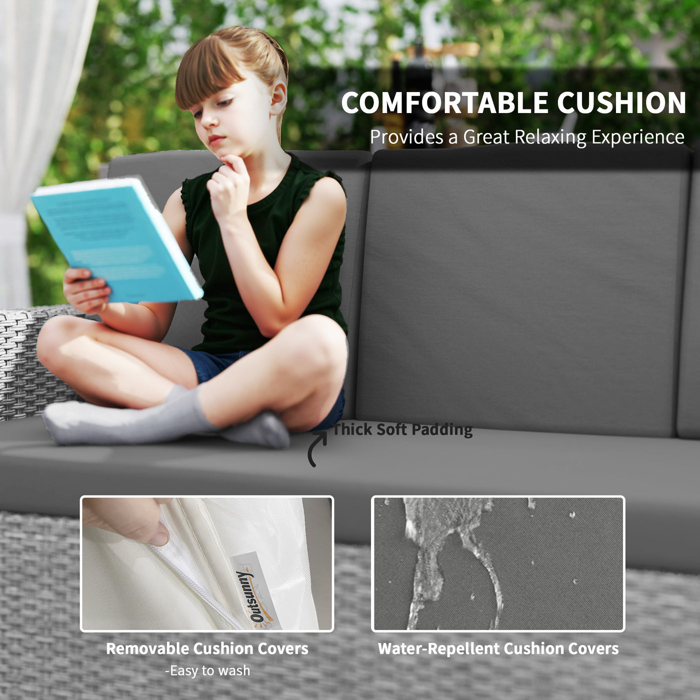 This Outsunny seven-piece rattan sofa set seats up to ten people. Bring family and friends together in comfort and style....