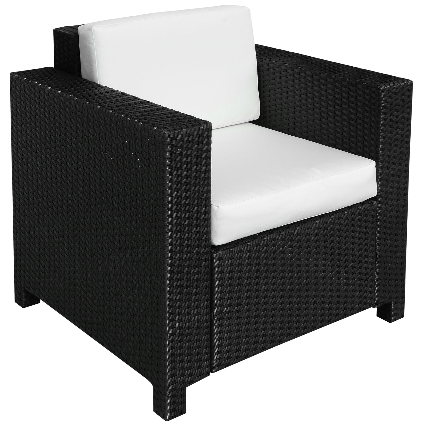Outsunny Single Seater Rattan Chair Sofa with 10 cm Thick Padded Cushion, All-Weather PE Wicker Weave Garden Armchair with Armrests, Black - Black