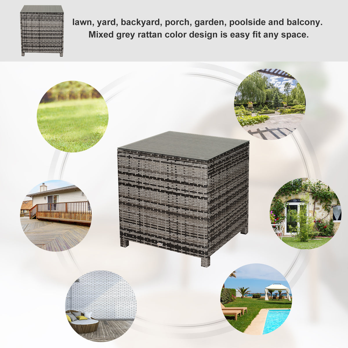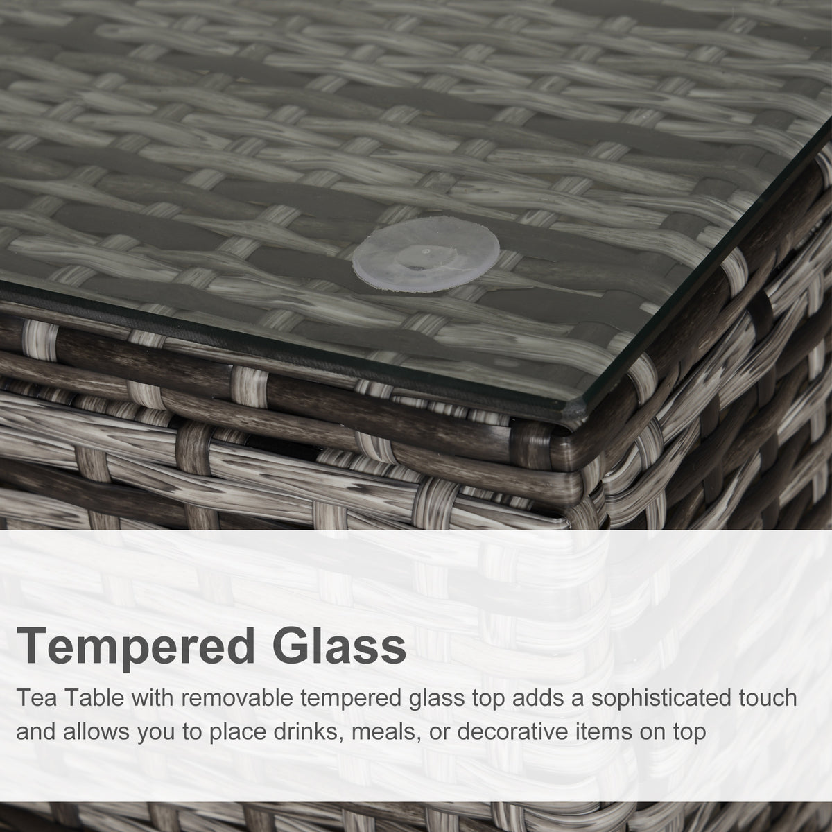 Outsunny Square PE Rattan Garden Table, with Glass Table Top - Grey - Mixed Grey