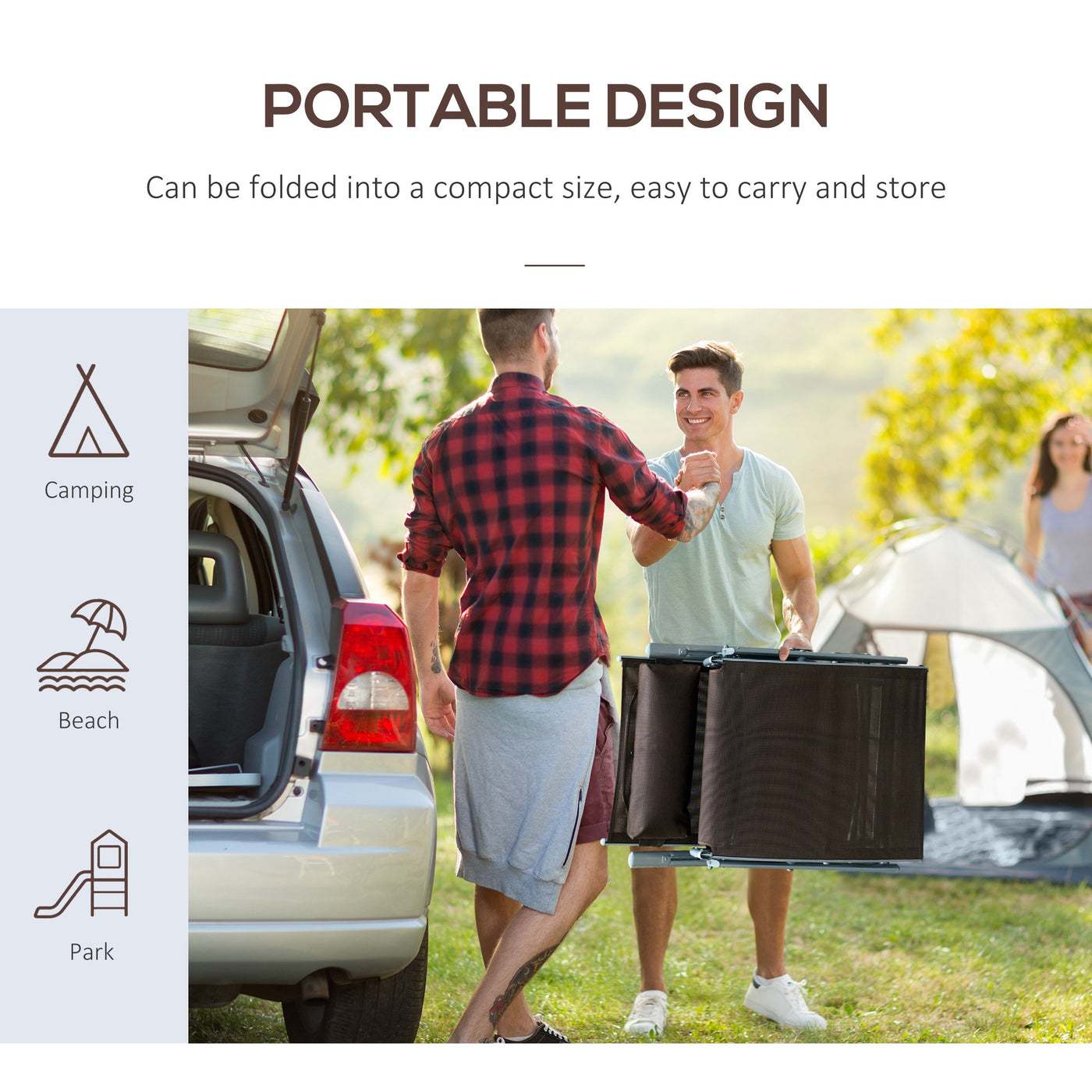 Outsunny Sun Lounger Steel Frame Outdoor Folding Chaise Texteline Lounge Chair Recliner with Headrest & 7 Levels Adjustable Backrest, Brown - Brown