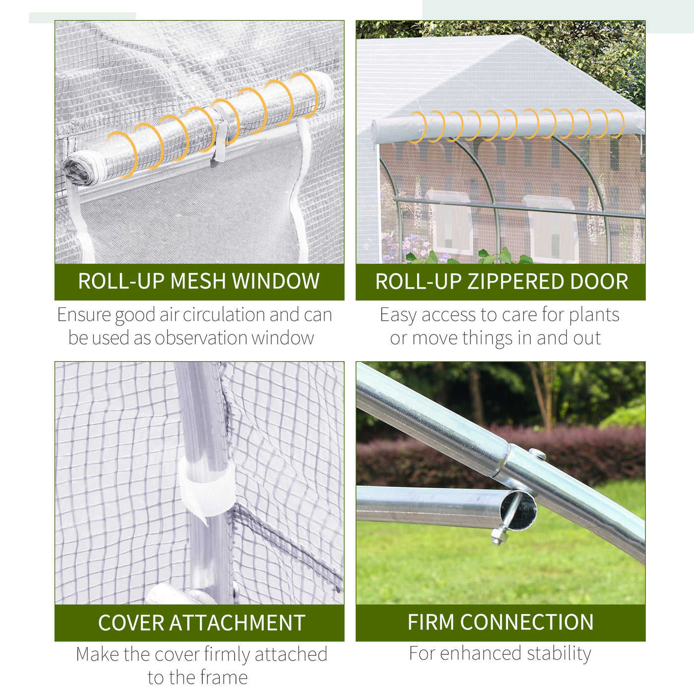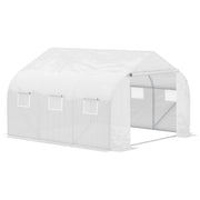 Outsunny Walk-In Polytunnel Greenhouse Warm House Garden Tunnel Shelter Plant Shed with Door and Windows, Galvanised Steel Frame, 3.5 x 3 x 2m, White - White