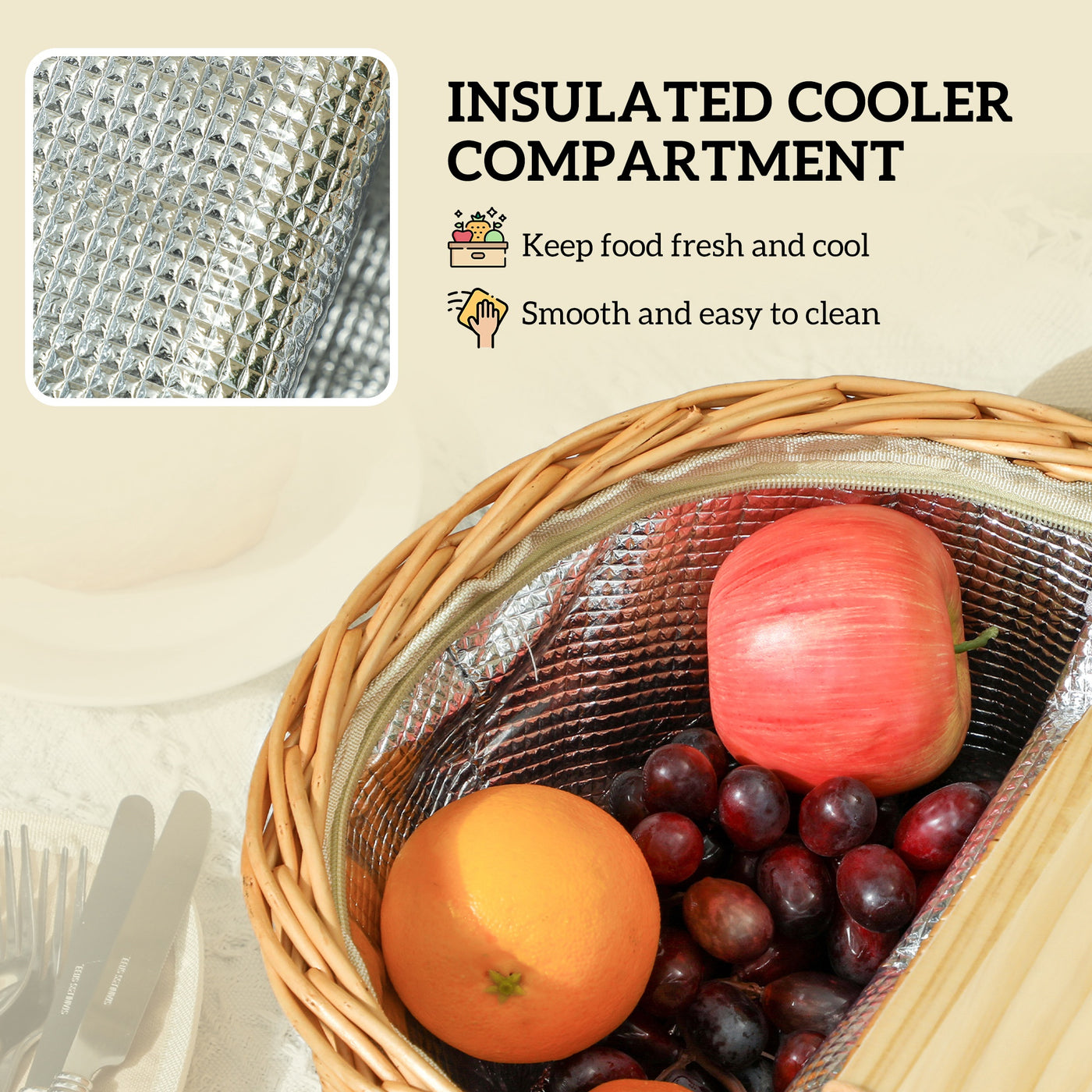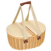 Outsunny Wicker Picnic Basket for 2 with Pine Wood Lid, Picnic Hamper with Cooler Compartment, Cutlery Service Kits, Carry Handle for Camping, Outdoor, Valentine Day, Chirtmas, Birthday, Light Brown