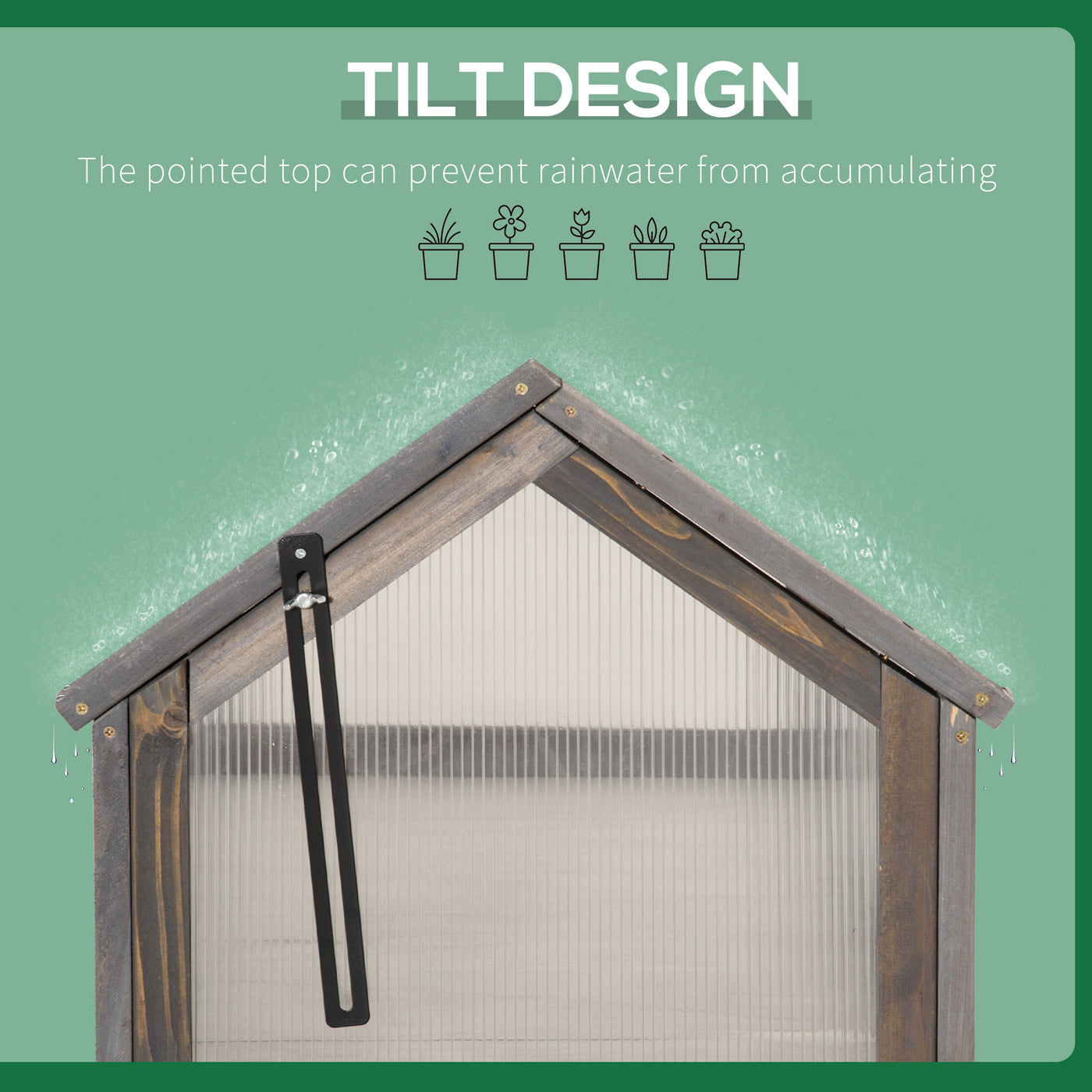 Outsunny Wooden Cold Frame Garden Polycarbonate Greenhouse with Openable Top Cover, Grow House for Flowers, Vegetables, Plants, 90 x 52 x 50cm, Grey - Grey