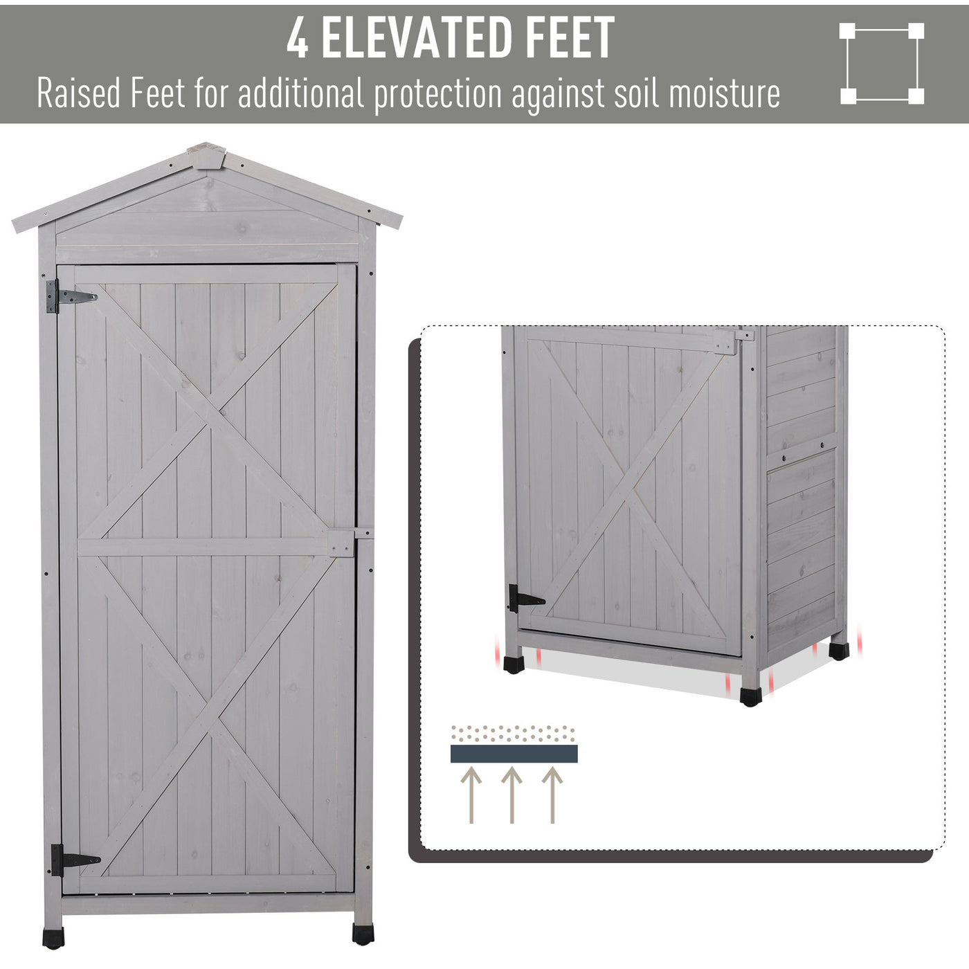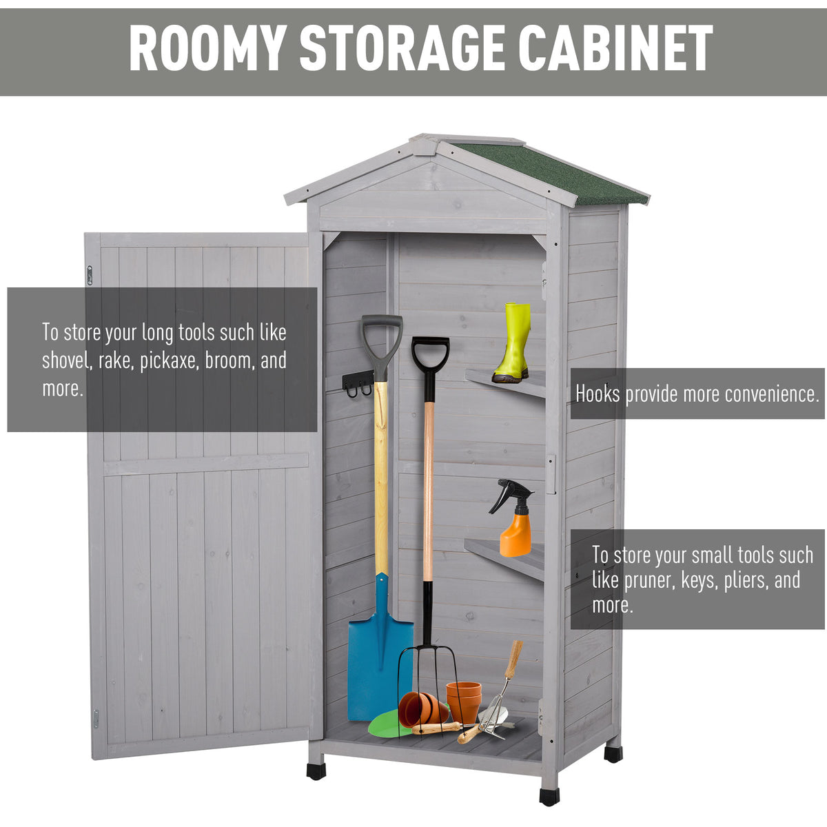 Outsunny Wooden Garden Shed, Outdoor Storage Cabinet with 2 Shelves and Hooks, Locking Organiser Outdoor Narrow Tool House, 74x55x155cm, Grey - Grey