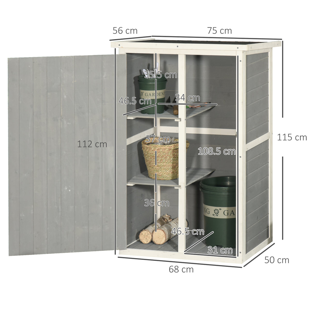 Outsunny Wooden Small Shed, Garden Storage Shed with Shelves and Bolt Latch, 75L x 56W x115H cm, Grey - Grey