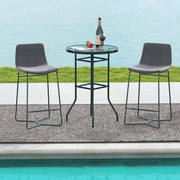 Colour: Black Material: Tempered Glass, Metal Overall Dimensions:68 x 68 x 97 cm (L x W x H) Base Dimensions:48 x 48 cm (L x W) Weight Capacity:55 kg Net Weight:8.5 kg Box Qty:1(May vary by batch)Package Includes: 1 x Outdoor Bar Table 1 x Instruction Manual