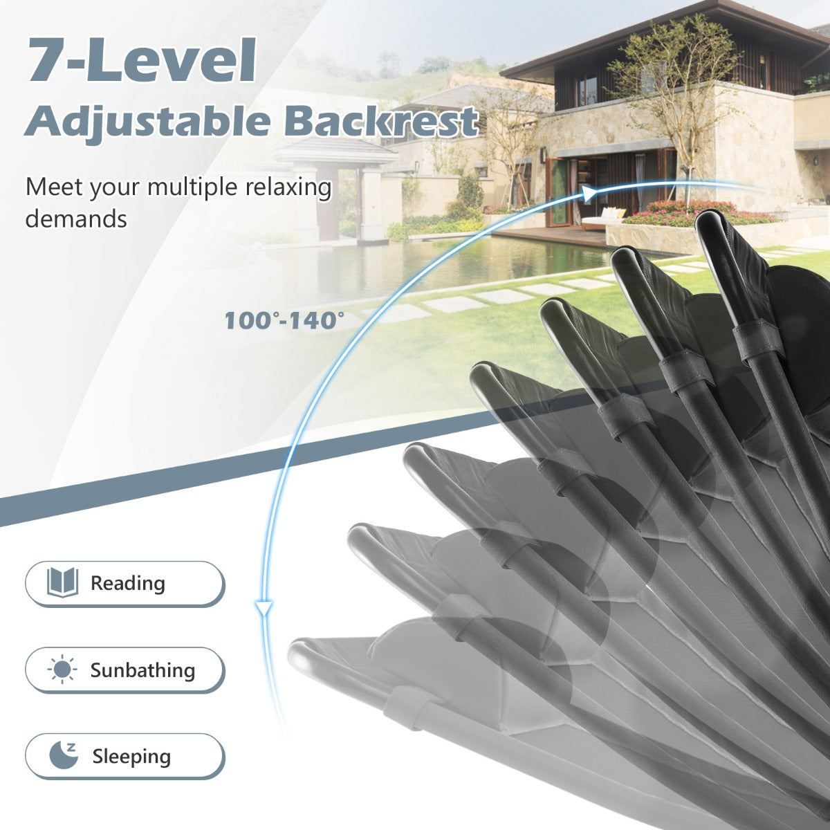 Patio Folding Chairs Set of 2 with Wide Armrests and 7-Level Backrest for Camping Backyard Garden-Black