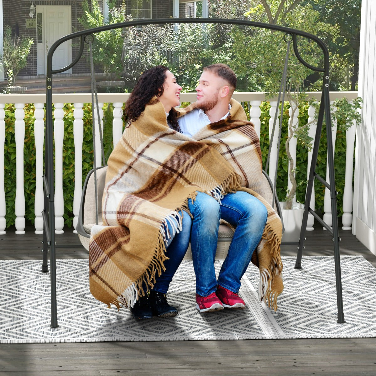 This metal swing stand is designed to provide an ideal spot for hanging your swing. The swing frame is crafted from strong and rustproof metal, ensuring durability and a long lifespan. The sturdy A-shaped structure is reinforced with double bars and features a 2-ring design and secure screw connection, ensuring exceptional stability. This versatile swing frame can accommodate various swings, including porch swings and tree swing seats, making it a perfect addition to any outdoor area. Its meticulous craftsmanship includes stable hanging rings and anti-slip footpads, ensuring comfortable and safe swinging experiences while also protecting the ground from unsightly scratches. Add a touch of functionality, durability, and style to your outdoor relaxation with this premium swing stand. Sturdy Metal Construction: The swing stand with 300 kg max load features built-to-last metal frame which is stable, heavy-duty, rustproof and anti-deformation, and thus ensuring high durability and stability. Enhanced Stability: Designed with a high-strength A-shaped frame with double crossbars, this swing stand offers exceptional stability. The reinforced 2-ring design also further enhance the sturdiness of the overall structure. Multiple Applicable Swings: This swing stand is designed with a reasonable distance between the 2 hanging rings. It adapts well to various types of swings, including tree swing seat, saucer swing, porch swing and so on. High-Grade Swing Stand: The swing stand is thoughtfully designed with stable hanging rings and tightened screw connection that prioritize safety during swinging. Effortless Assembly: With a clear instruction and all necessary accessories included, assembling the swing frame is a breeze. You can quickly and efficiently set it up without any hassle.