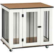 PawHut Dog Crate Furniture, Dog Cage End Table, with Wheels, for Medium Dogs, 80 x 60 x 76.5cm - White