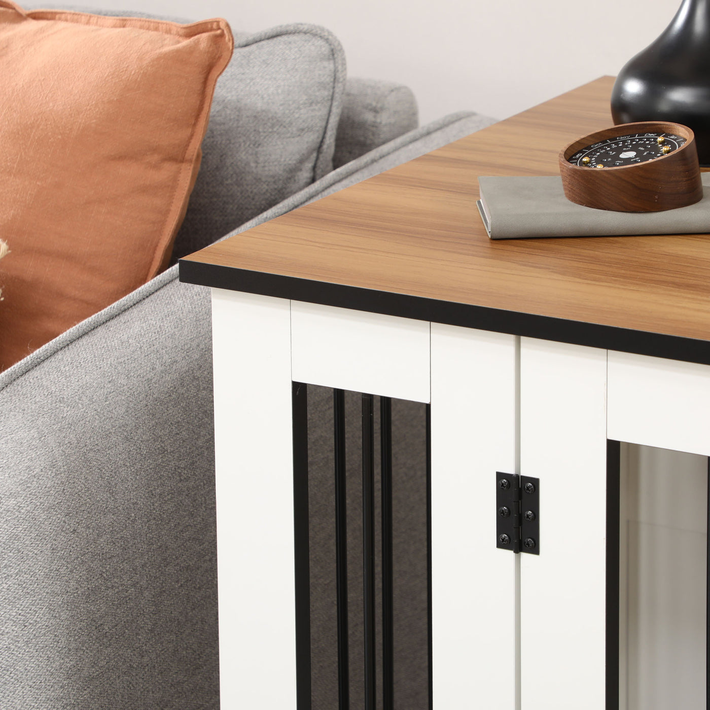 This stylish PawHut dog crate table, which acts as a side table too! Pets have a spot for relaxing, whilst...