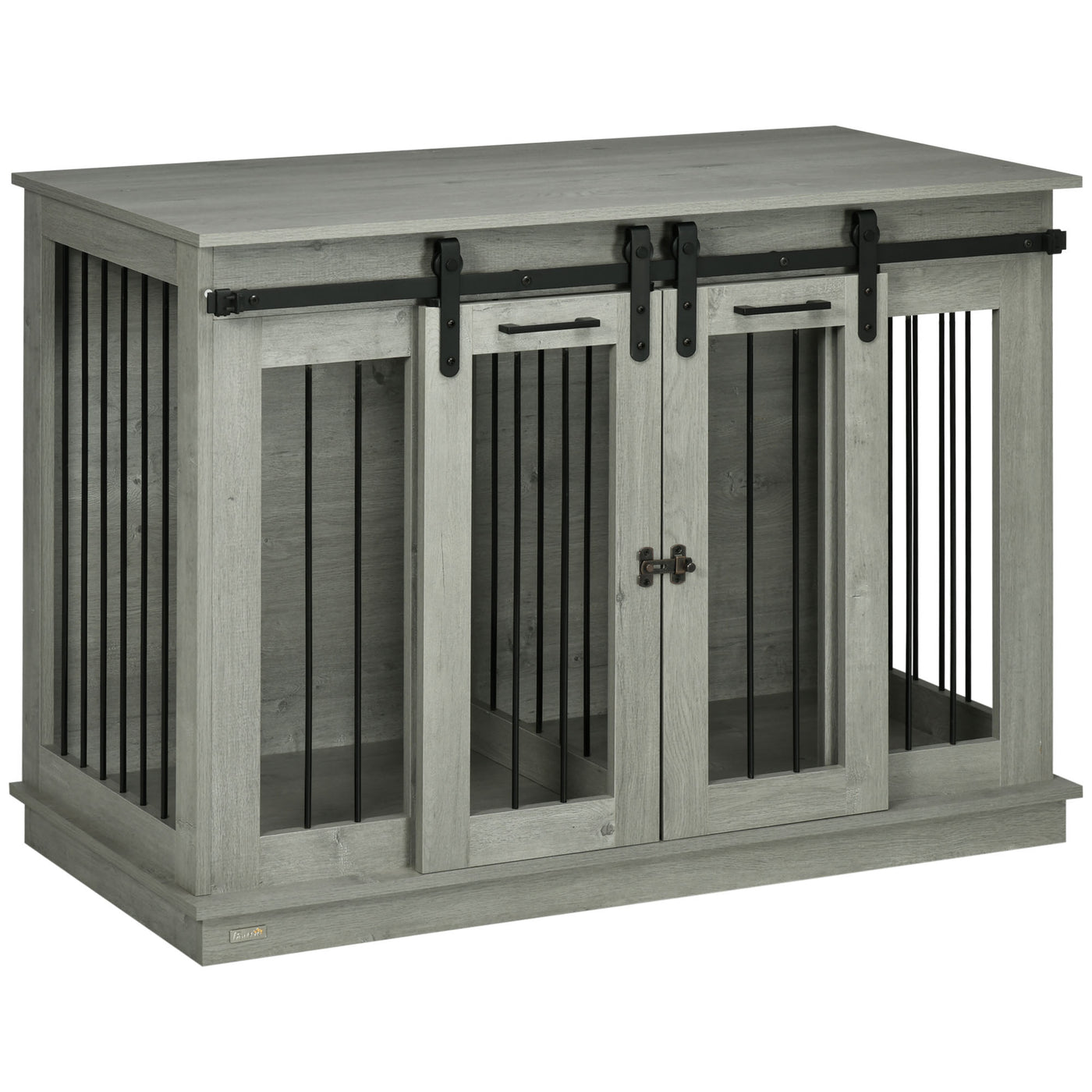 PawHut Dog Crate Furniture for Large Dogs, Double Dog Cage for Small Dogs, with Divider - Grey - Grey