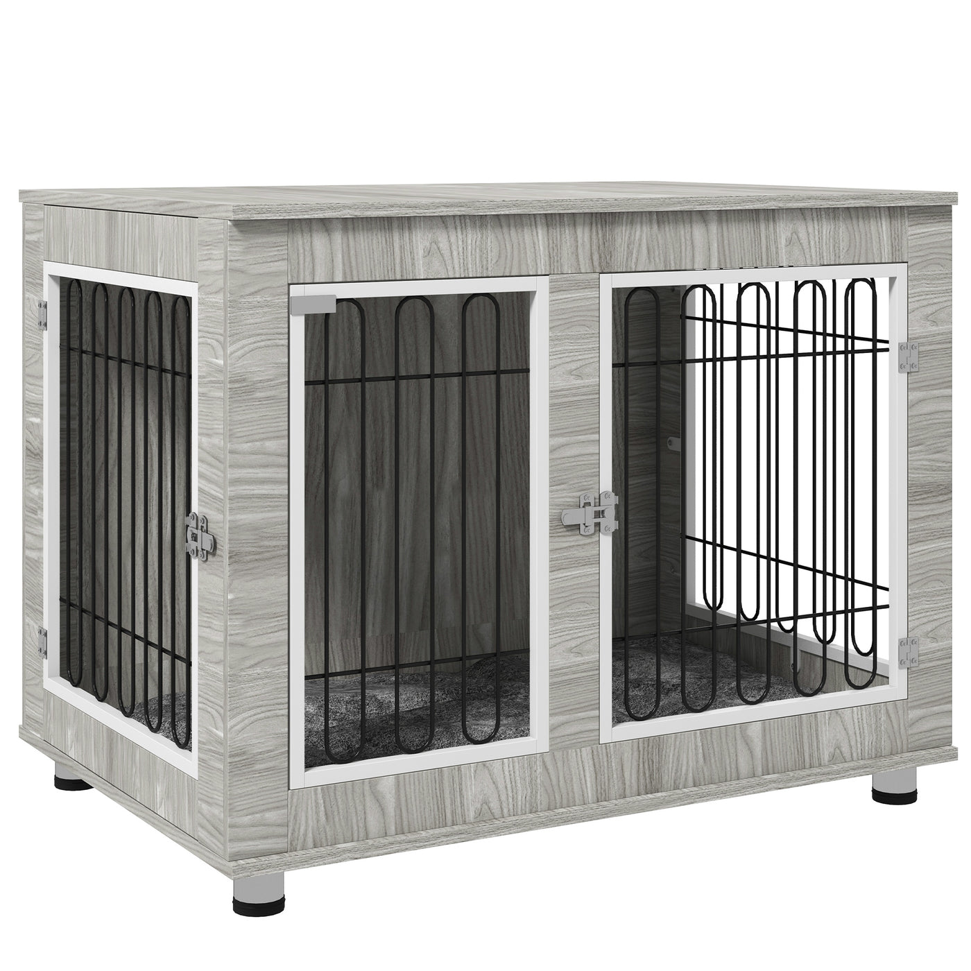 PawHut Indoor Dog Kennel w/ Soft Cushion, Double Door for Large Dogs, 106 x 74 x 81.5cm, Grey - Grey