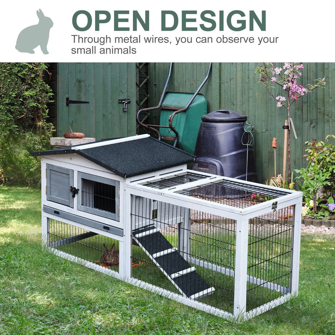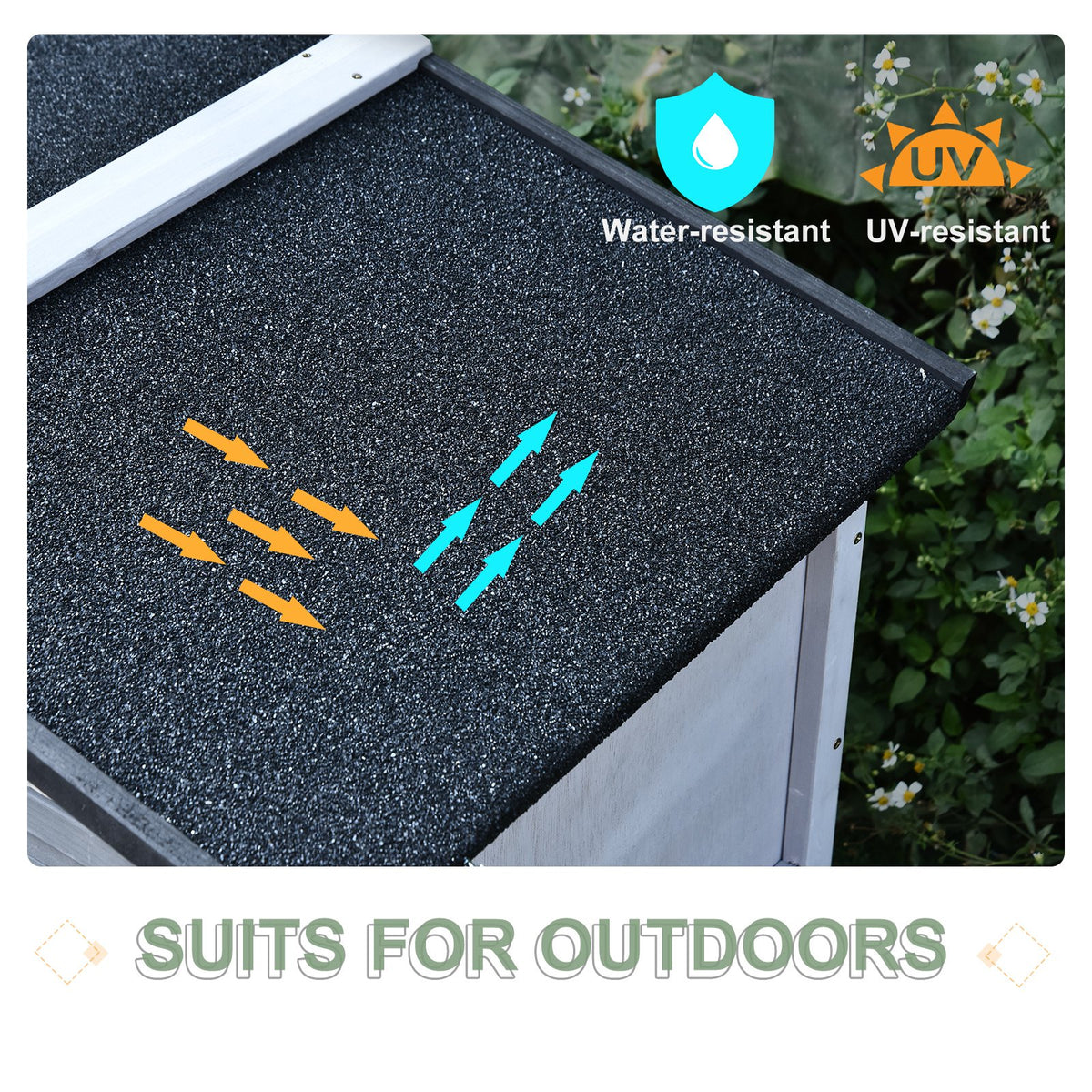 PawHut Small Animal Two-Level Fir Wood Guinea Pigs Hutches w/ Ramp Burnt Grey - Natural Wood, Grey